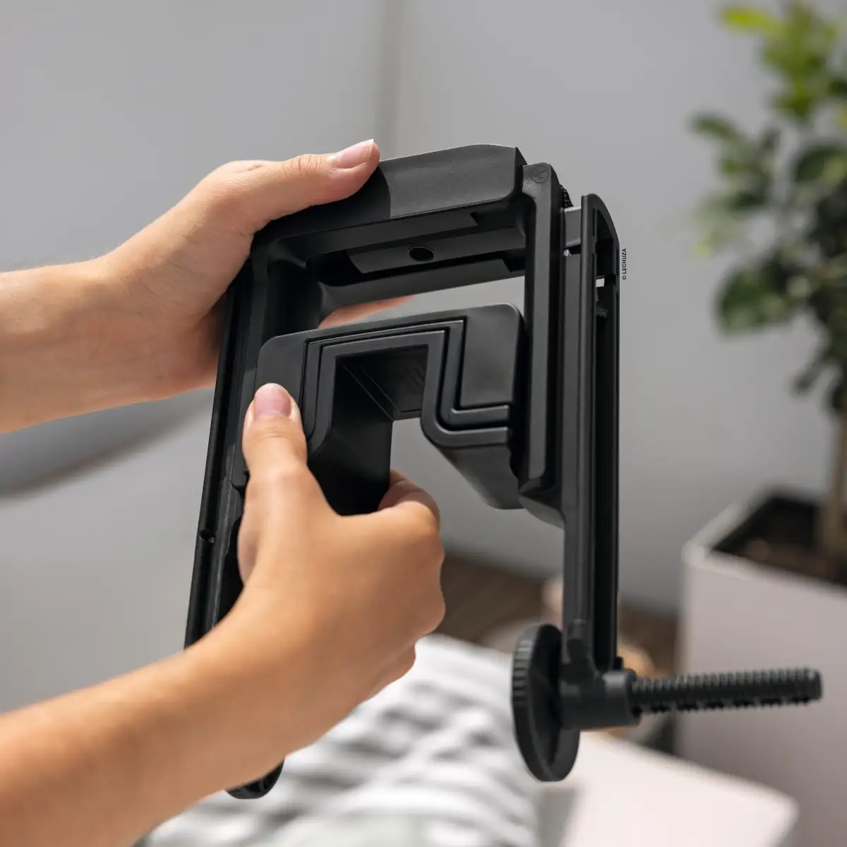 Balconera DUO uchwyt balkonowy czarny to solidny i przemyślany element akcesoriów marki LECHUZA, który pozwala w pełni wykorzystać potencjał doniczek BALCONERA. Dzięki możliwości montażu dwóch donic, jednej po wewnętrznej, drugiej po zewnętrznej stronie balustrady, możliwe jest stworzenie efektownej, wielowarstwowej aranżacji balkonowej, która prezentuje się atrakcyjnie zarówno od strony balkonu, jak i elewacji. Produkt łączy wysoką jakość materiałów z precyzyjną konstrukcją, zapewniając stabilność oraz estetyczny wygląd całej kompozycji.