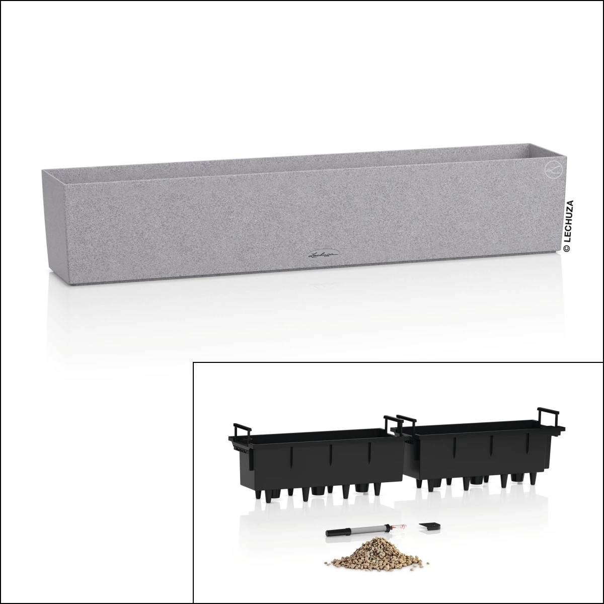 Model BALCONERA Stone 100 to propozycja dla osób, które oczekują donicy długiej donicy, umożliwiającej swobodną aranżację roślin balkonowych, ziół lub roślin sezonowych. Połączenie struktury kamienia z technologią LECHUZA pozwala stworzyć estetyczną i uporządkowaną przestrzeń, jednocześnie ograniczając czas poświęcany na codzienną pielęgnację roślin.