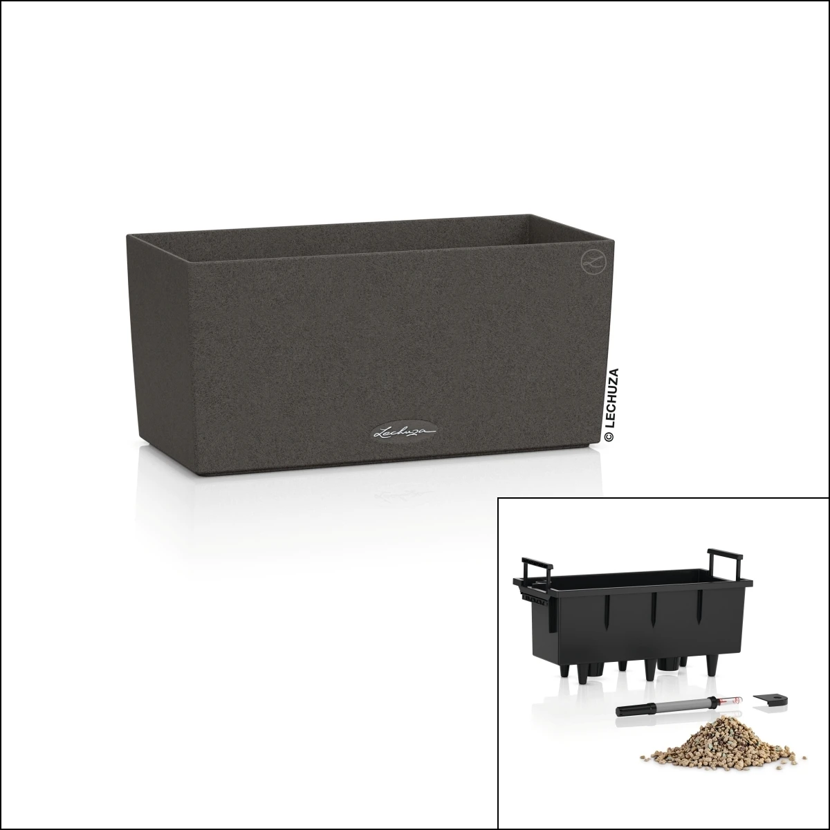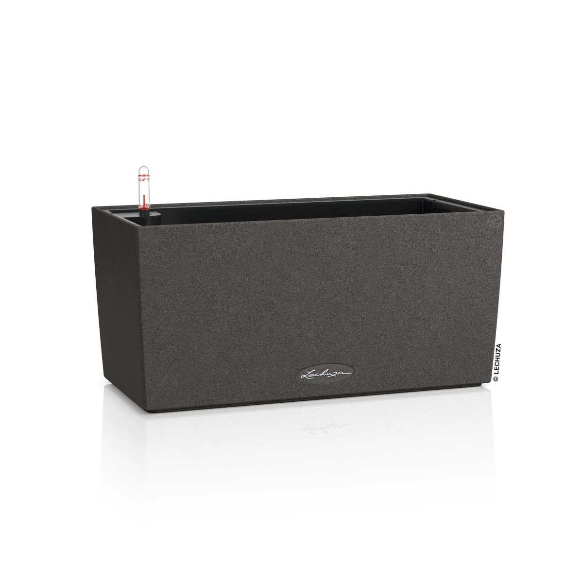 Model BALCONERA Stone 40 w kolorze grafitowy czarny to doniczka balkonowa LECHUZA z systemem nawadniania, zaprojektowana z myślą o nowoczesnych, kontrastowych aranżacjach balkonowych i tarasowych. Jej kompaktowa, prostokątna forma umożliwia estetyczne zagospodarowanie balustrad, parapetów i niewielkich przestrzeni, a ciemna kolorystyka w połączeniu ze strukturą kamienia nadaje donicy zdecydowany, architektoniczny wygląd. Grafitowy czarny doskonale podkreśla zieleń roślin i sprawdza się jako mocny akcent wizualny w nowoczesnym otoczeniu.