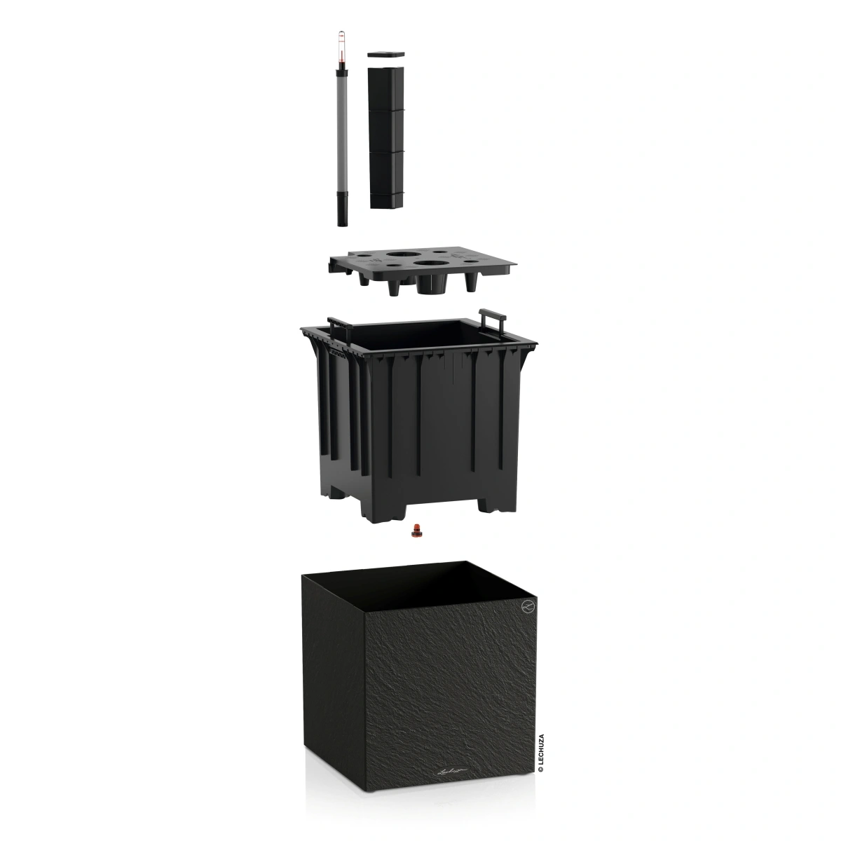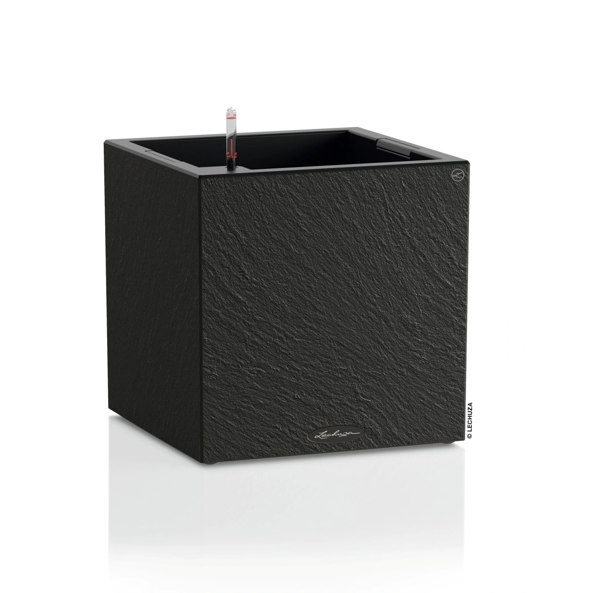 LECHUZA CANTO Slatestone 40 w kolorze ciemny szary to donica z systemem nawadniania, która pozwala tworzyć nowoczesne zielone aranżacje we wnętrzach i przestrzeniach zewnętrznych. Forma kostki 40x40x40 cm zapewnia roślinom stabilne oparcie i odpowiednią ilość miejsca do wzrostu, a widoczna i wyczuwalna struktura Slatestone nadaje całości solidny, architektoniczny charakter. System nawadniania wspiera równomierny rozwój roślin i ogranicza częstotliwość podlewania, co przekłada się na wygodę codziennego użytkowania. Ciemny szary kolor tworzy eleganckie, kontrastowe tło, które naturalnie podkreśla zieleń.