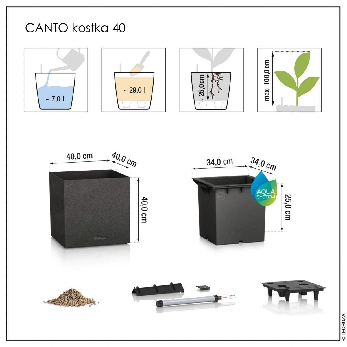 Szczegółowe wymiary i pojemność zgodnie z kartą producenta LECHUZA dostępną na stronie produktu.