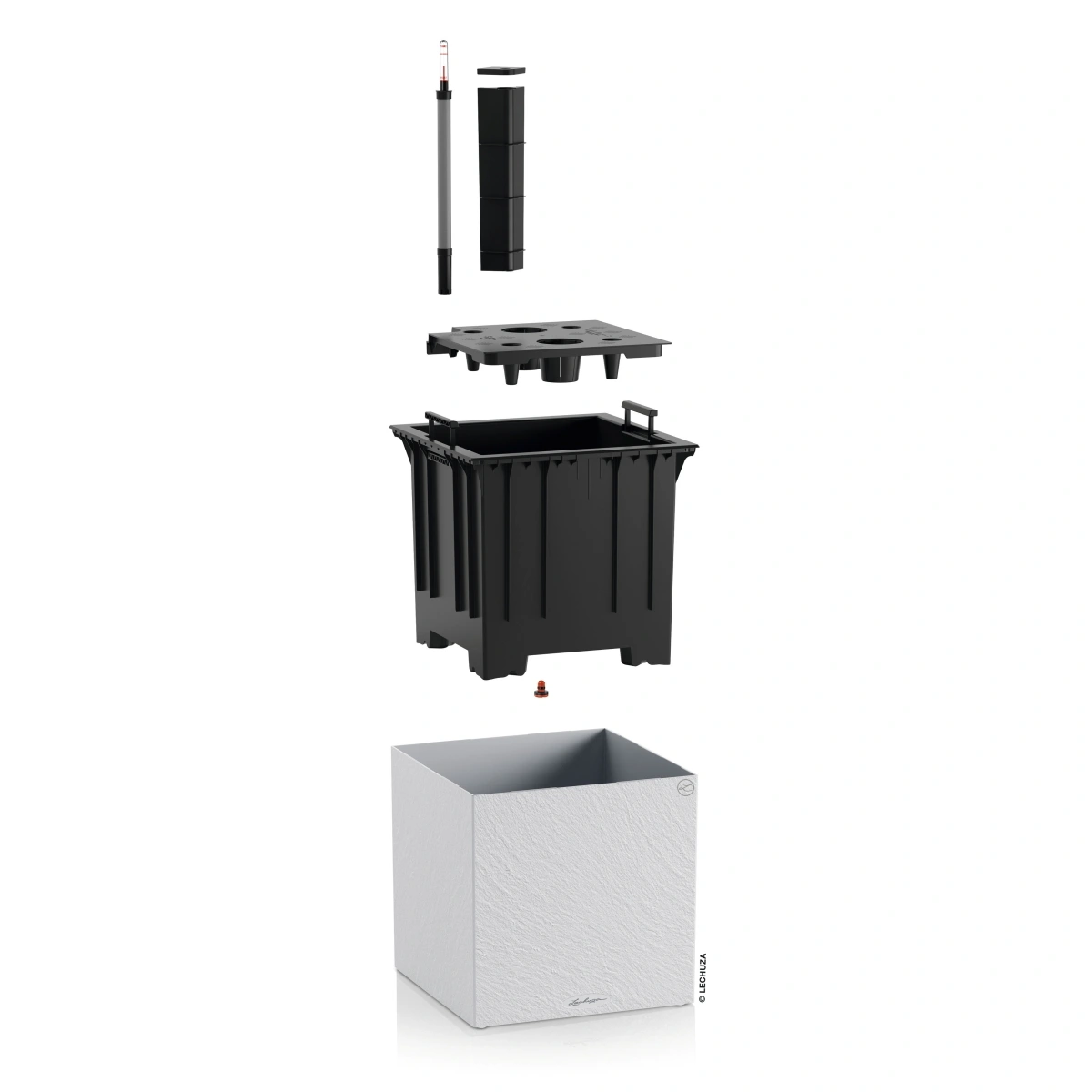 W LECHUZA CANTO Slatestone 40 zastosowano system nawadniania, który wspiera rośliny w równomiernym wzroście i ogranicza konieczność częstego podlewania. Woda magazynowana w zasobniku pod wyjmowanym wkładem jest stopniowo pobierana przez rośliny zgodnie z ich zapotrzebowaniem, co sprzyja stabilnym warunkom uprawy. Donica pozwala cieszyć się estetyczną aranżacją bez codziennej kontroli wilgotności podłoża.