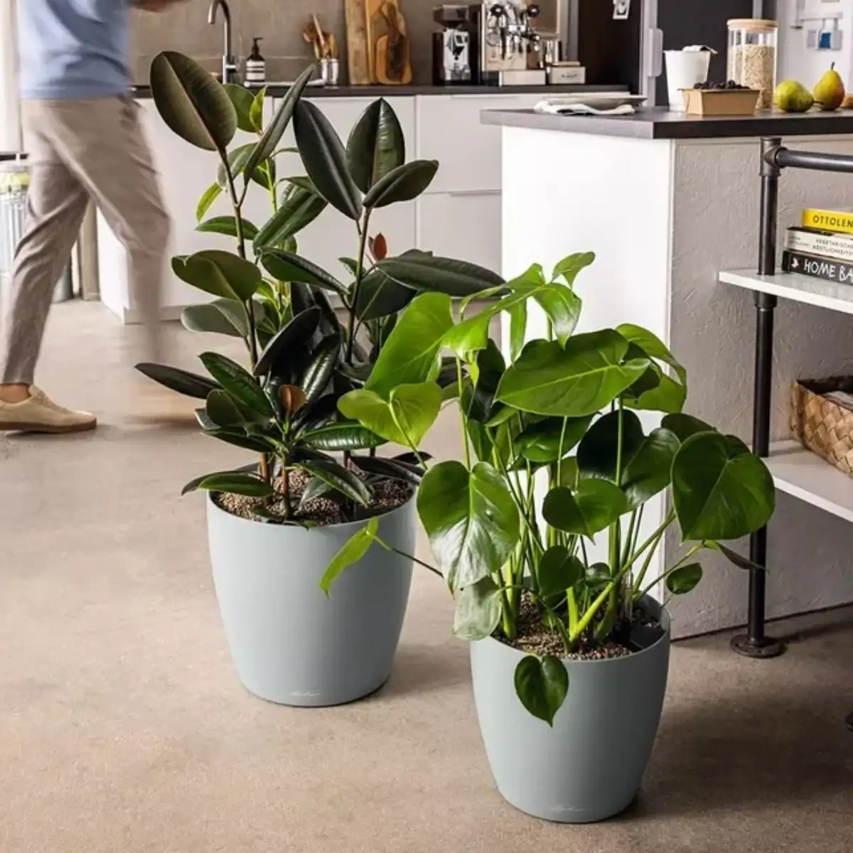Jasna szara donica LECHUZA CLASSICO Color 43 nadaje roślinom elegancką oprawę w domu, biurze i na tarasie.