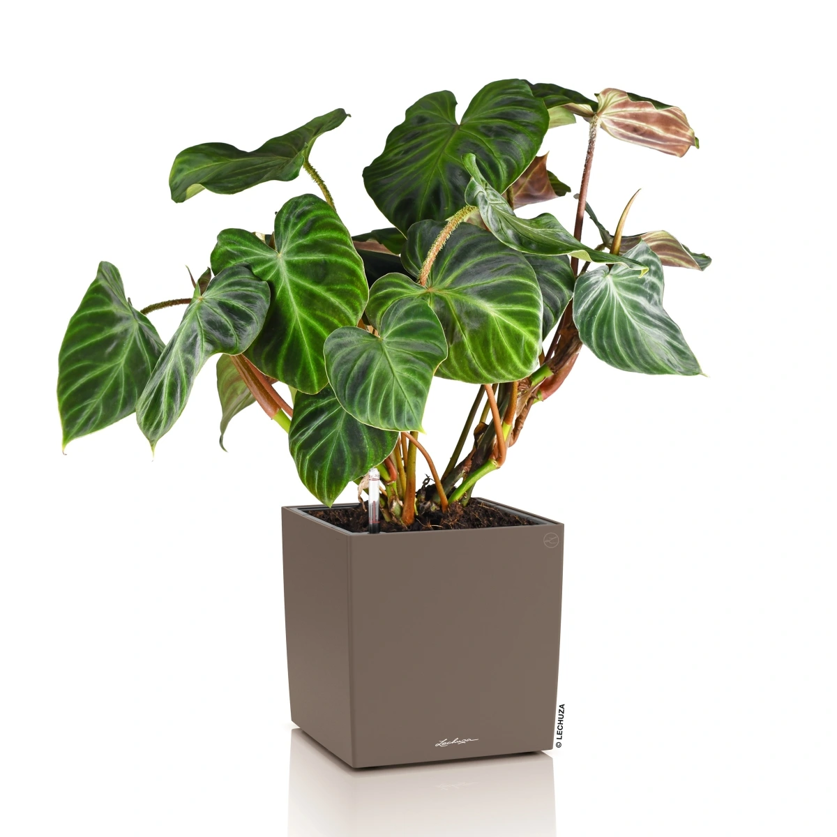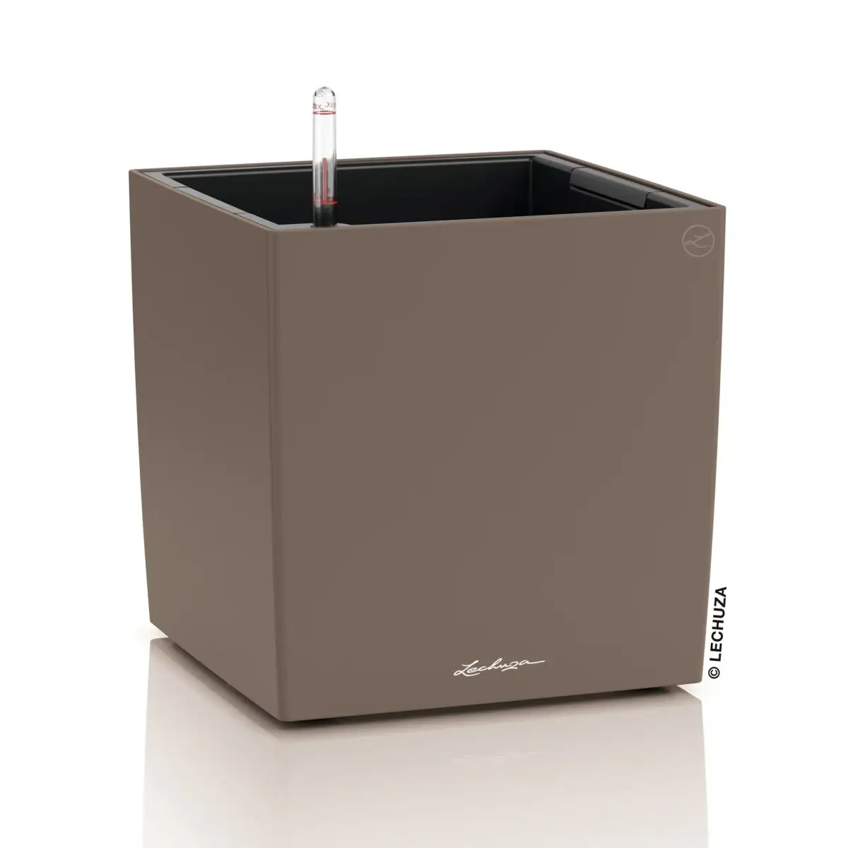 Doniczka CUBE Color 30 wyposażona jest w system nawadniania LECHUZA z zasobnikiem wody o pojemności 3 litrów, który umożliwia roślinom stopniowe pobieranie wilgoci zgodnie z ich naturalnym zapotrzebowaniem. Rozwiązanie to stabilizuje poziom nawodnienia podłoża i wspomaga rozwój roślin, ograniczając ryzyko przelania oraz przesuszenia. Wskaźnik poziomu wody pozwala na bieżącą kontrolę ilości wody w zasobniku, a połączenie systemu z wyjmowanym wkładem znacząco zwiększa wygodę użytkowania i utrzymania donicy w czystości.