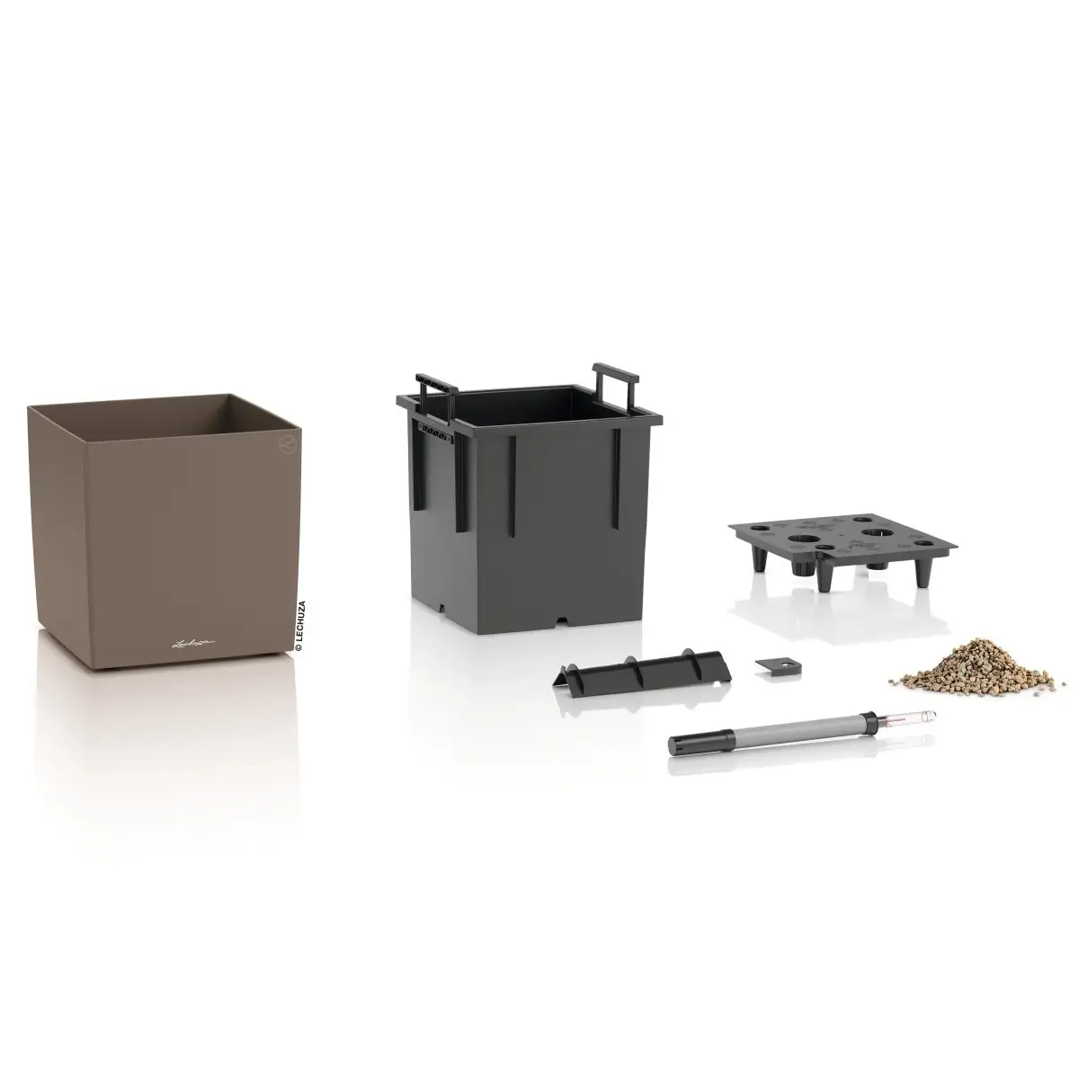 LECHUZA CUBE Color 30 w kolorze muszkatołowy brąz to donica o wymiarach 29,5x29,5 cm i wysokości 30 cm, która łączy wyrazistą, sześcienną formę z funkcjonalnym wyjmowanym wkładem na roślinę. Wkład pozwala na łatwe wyjęcie całej bryły korzeniowej wraz z podłożem, co upraszcza przesadzanie oraz sezonową zmianę kompozycji bez konieczności opróżniania obudowy donicy. Pojemność 12 litrów zapewnia odpowiednią przestrzeń dla roślin średniej wielkości, a proporcjonalna konstrukcja modelu pozwala na jego zastosowanie zarówno jako samodzielnego akcentu, jak i elementu większej aranżacji.