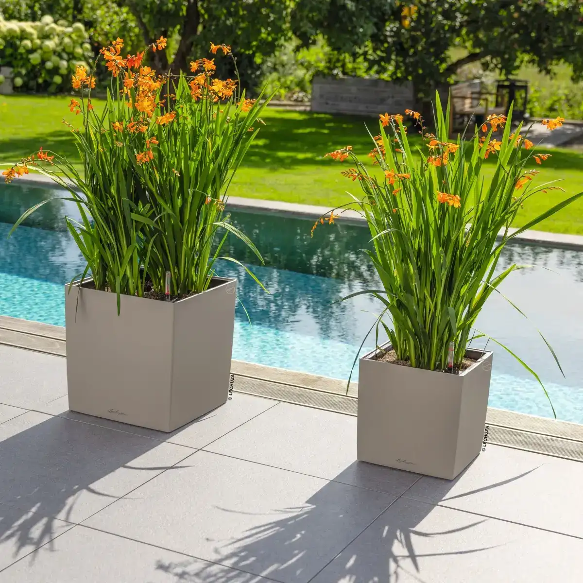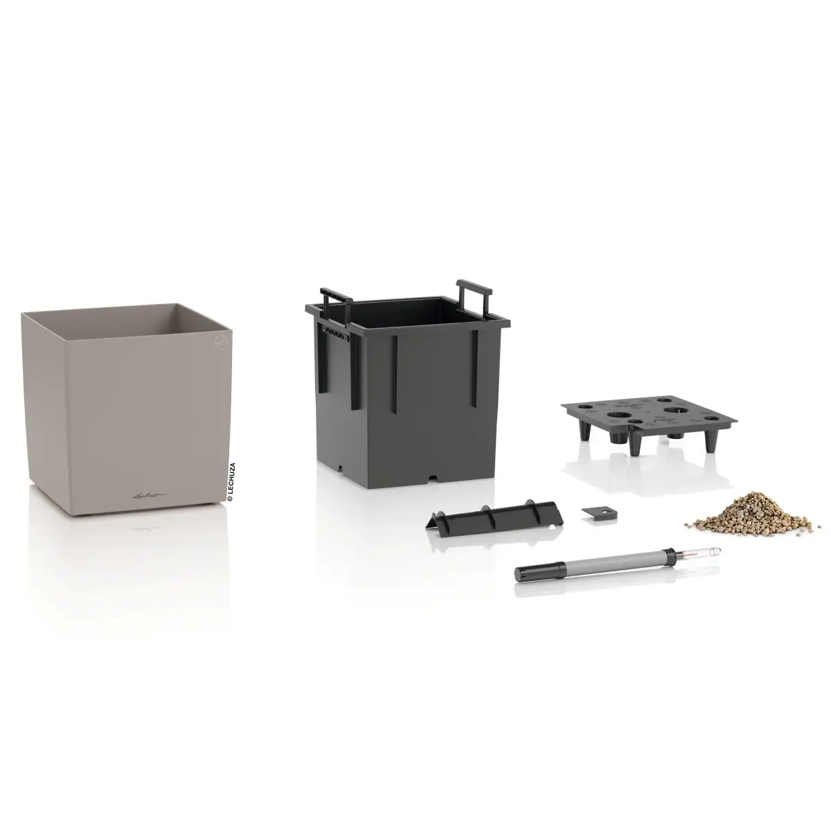 CUBE Color 30 wyposażona jest w system nawadniania LECHUZA z zasobnikiem wody o pojemności 3 litrów, który umożliwia stopniowe pobieranie wody przez rośliny. Rozwiązanie to stabilizuje warunki wzrostu i wspomaga rozwój roślin, ograniczając ryzyko przelania oraz przesuszenia podłoża. Wskaźnik poziomu wody pozwala kontrolować ilość wody w zasobniku, co zwiększa wygodę codziennej pielęgnacji. Połączenie systemu z wyjmowanym wkładem sprawia, że model łączy estetykę z wysoką funkcjonalnością.