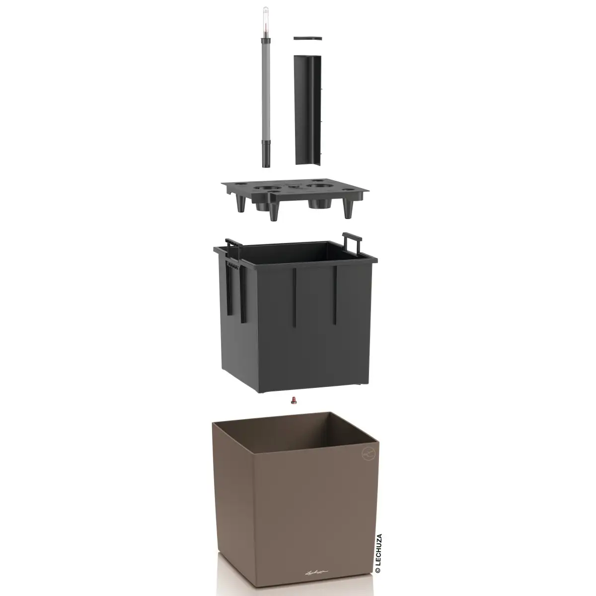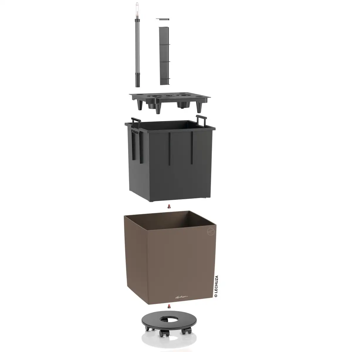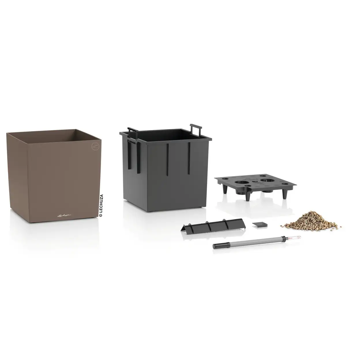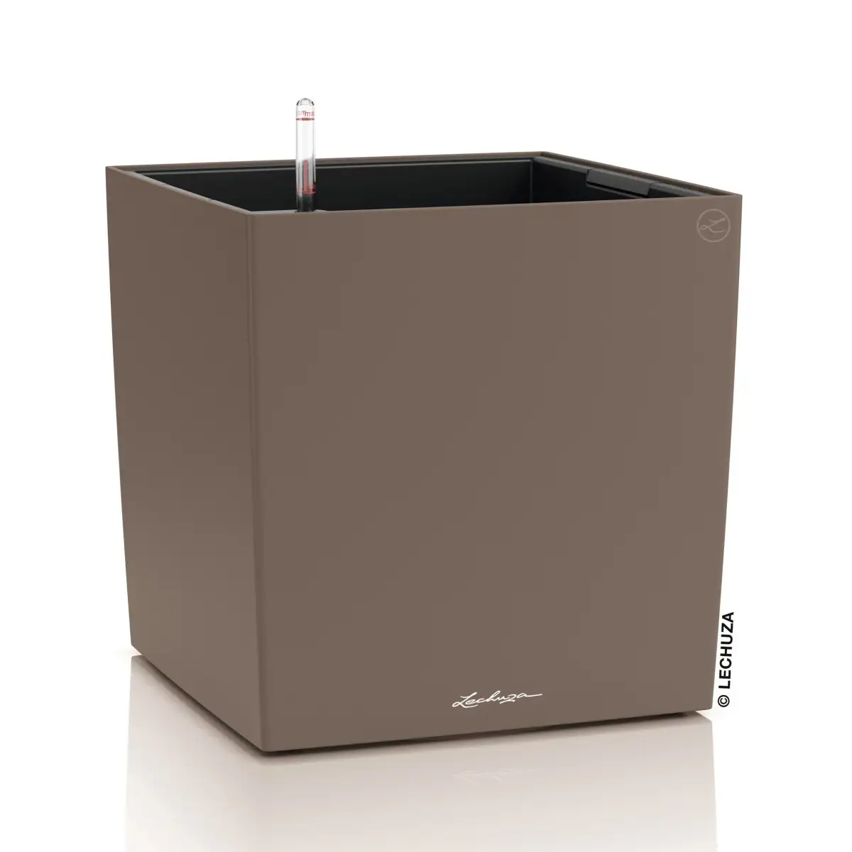 LECHUZA CUBE Color 40 w kolorze muszkatołowy brąz to donica o wymiarach 39,5x39,5 cm i wysokości 40 cm, zaprojektowana z myślą o roślinach o rozbudowanym systemie korzeniowym oraz efektownych aranżacjach wnętrz i tarasów. Jej foremna, sześcienna bryła nadaje przestrzeni nowoczesny, uporządkowany charakter, a wyjmowany wkład znacząco podnosi wygodę użytkowania. Wkład umożliwia wyjęcie całej bryły korzeniowej wraz z podłożem bez konieczności opróżniania ziemi z korpusu donicy, co usprawnia przesadzanie, czyszczenie oraz sezonowe zmiany kompozycji. Duża objętość donicy zapewnia stabilność nawet przy wysokich roślinach.