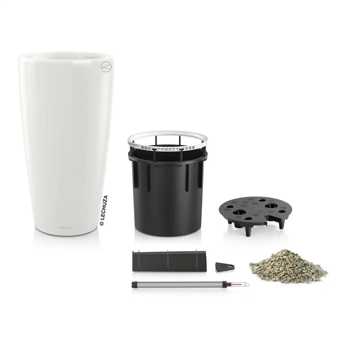 W komplecie: donica, wkład, system nawadniający, granulat Lechuza Pon