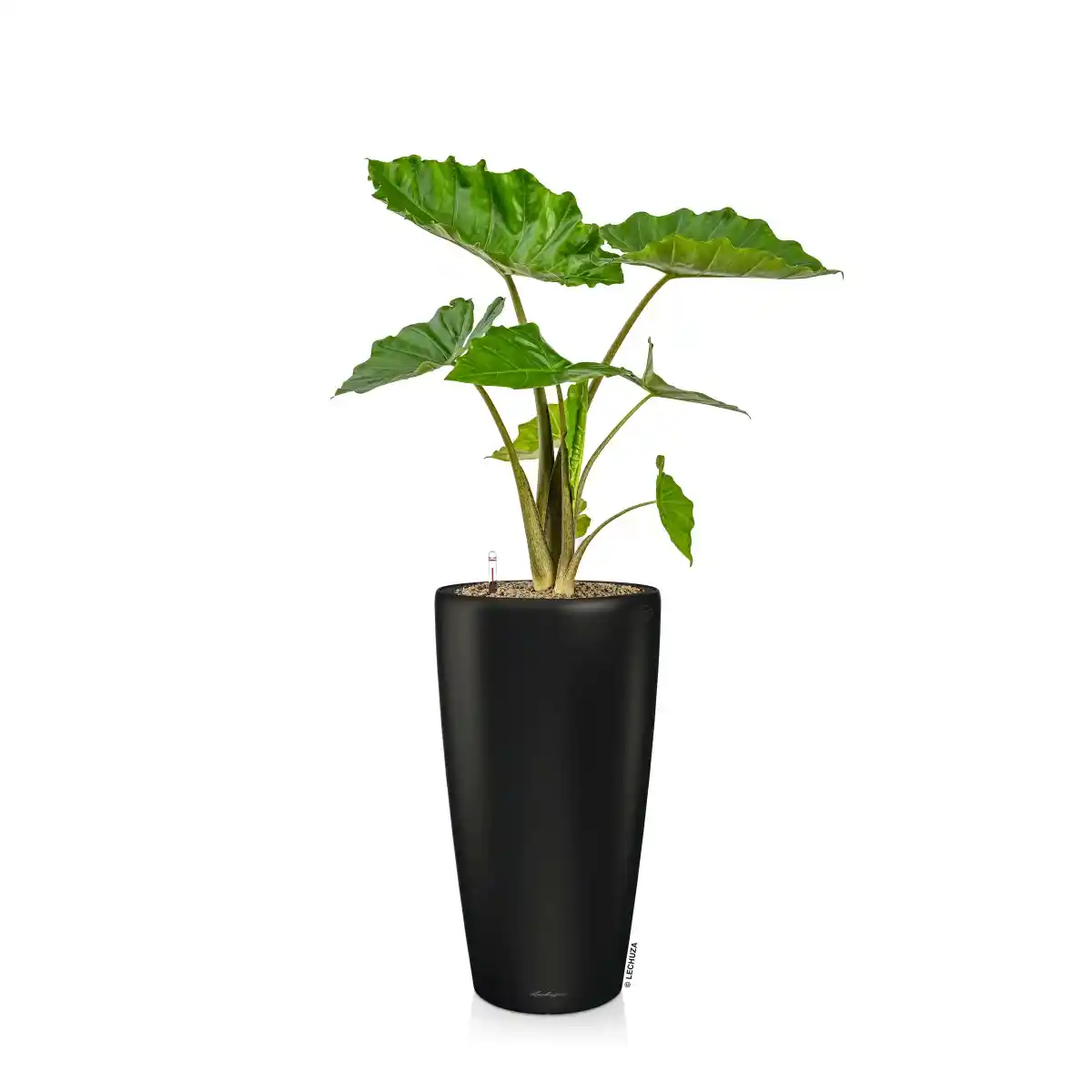 Zintegrowany system nawadniania LECHUZA umożliwia dostarczanie wody bezpośrednio do strefy korzeniowej. Roślina pobiera dokładnie taką ilość wilgoci, jakiej potrzebuje, co sprzyja stabilnemu wzrostowi i ogranicza ryzyko przelania. Zastosowany zasobnik na wodę ze wskaźnikiem poziomu pozwala łatwo kontrolować nawodnienie bez ingerowania w aranżację.