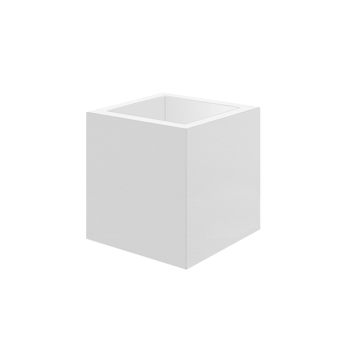 Wymiary 40x40x40 cm pozwalają na łatwe ustawienie donicy nawet w mniejszych przestrzeniach. Regularna bryła sprawia, że model dobrze prezentuje się zarówno jako pojedynczy element, jak i w zestawieniu z innymi donicami. Biała, matowa powierzchnia nadaje całości lekkości i świeżości, a jednocześnie stanowi neutralne tło dla roślin, które stają się głównym elementem aranżacji.