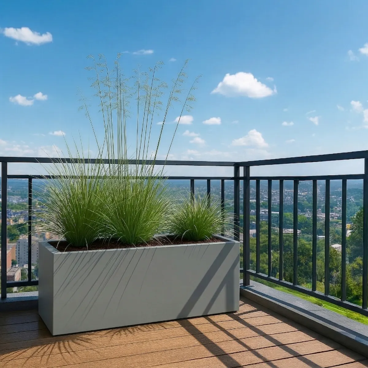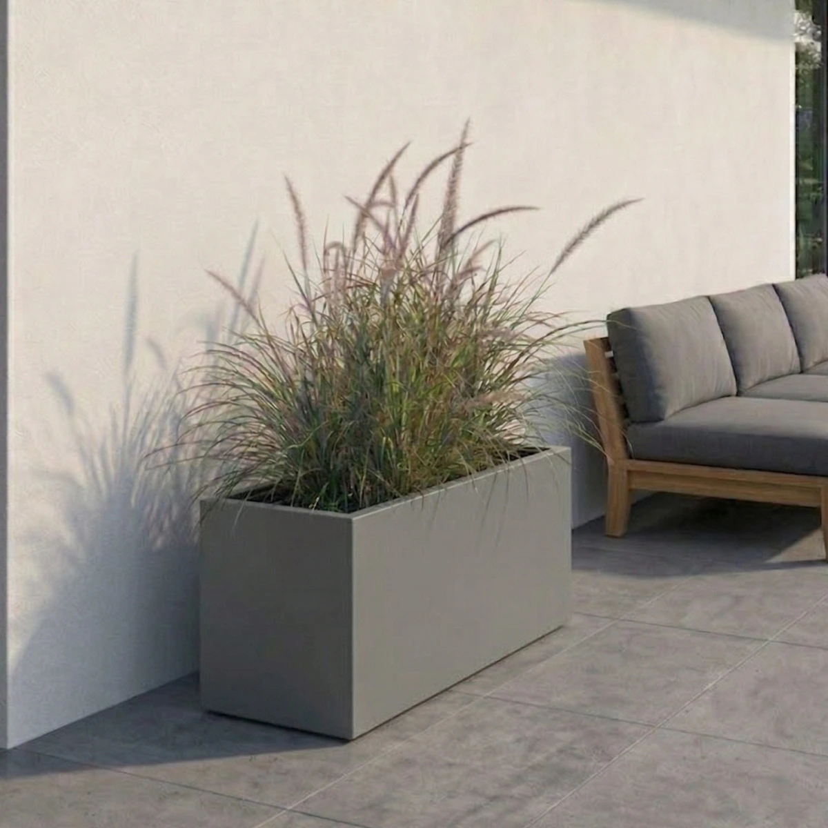Kolor szary mat (zbliżony do RAL 7037) to jeden z najbardziej uniwersalnych wyborów, który łatwo dopasować do różnych materiałów i stylów. Doskonale współgra z drewnem, betonem oraz metalem, tworząc spójne i eleganckie zestawienia. Szara donica tarasowa LINEO stanowi idealne tło dla zieleni, podkreślając jej naturalny charakter bez nadmiernego kontrastu.