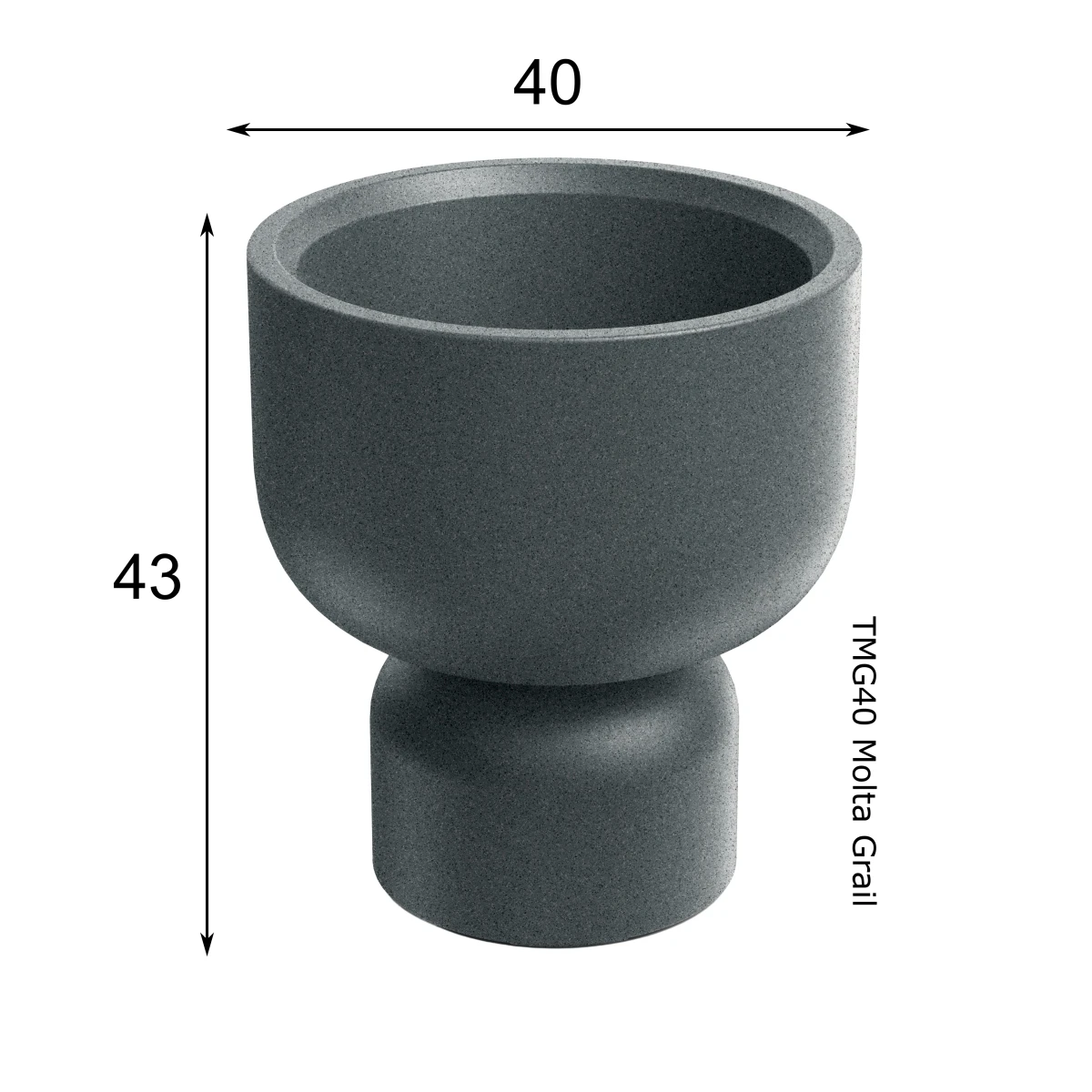 Donica ETHICK MOLTA GRAIL TMG40 została zaprojektowana jako stabilna, zwarta bryła o kielichowej sylwetce, delikatnie rozszerzanej ku górze. Forma inspirowana archetypem graala porządkuje proporcje donicy i nadaje jej elegancki, architektoniczny charakter. Subtelna struktura powierzchni oraz masywna, ale wizualnie zrównoważona podstawa nawiązują do naturalnego kamienia, dzięki czemu donica prezentuje się solidnie, a jednocześnie nowocześnie. Kielichowa forma pozwala roślinom wyraźnie wybrzmieć w aranżacji, nie dominując przestrzeni.