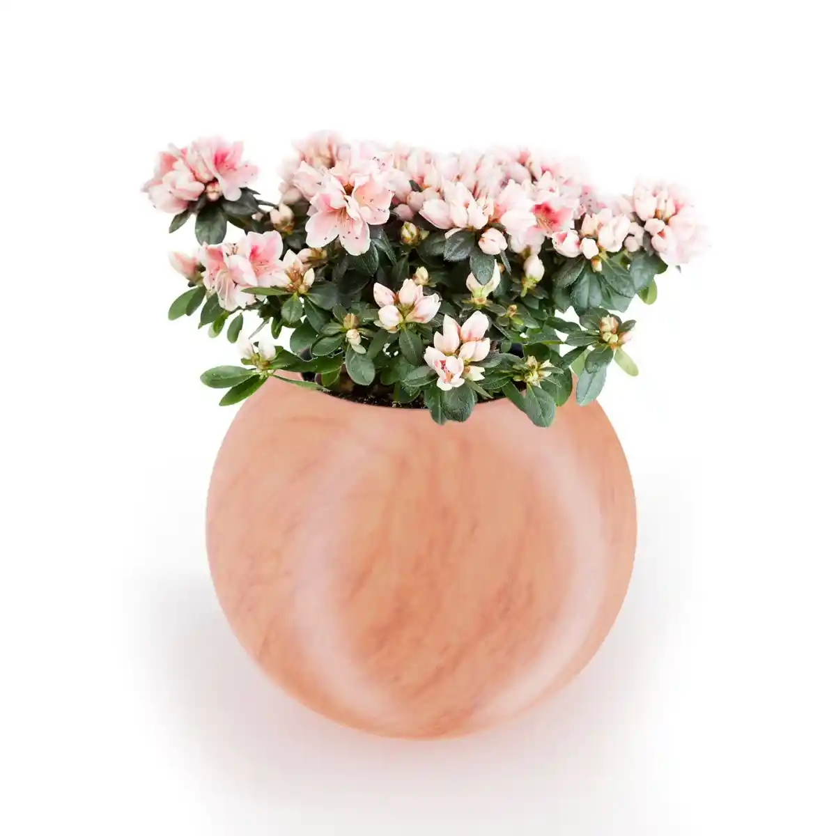 Donica JUPITER PL-JU64 w ciepłym odcieniu terakoty to duża, niemal idealnie kulista forma o wysokości 64 cm i średnicy 75,5 cm. Jej proporcje są harmonijne i stabilne wizualnie, dzięki czemu bryła prezentuje się solidnie, a jednocześnie elegancko. To model, który przyciąga uwagę, ale robi to w sposób szlachetny i wyważony.
