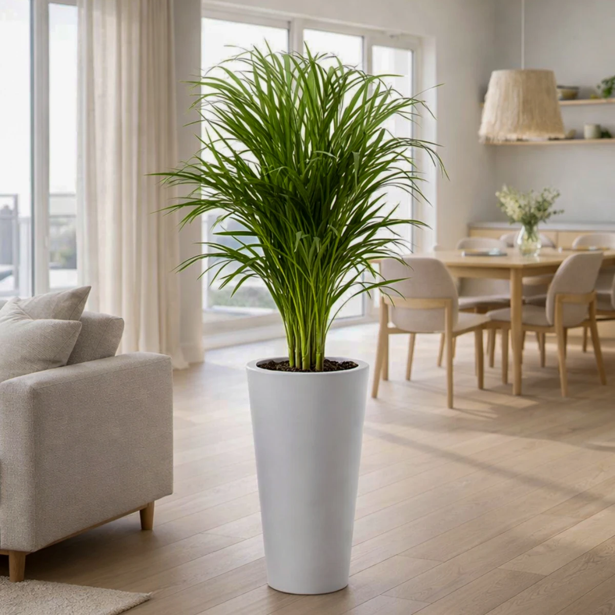 Obecność roślin ozdobnych w biurowcach, restauracjach, gabinetach, instytucjach użytku publicznego oraz innych przestrzeniach doskonale wpływa na komfort i jakość życia każdego człowieka. Nic dziwnego, że coraz częściej zielone aranżacje pojawiają się w tego typu miejscach. Stylową donicę VENUS o ponadczasowym designie z powodzeniem można wykorzystać zarówno do ogrodów, jak i wnętrz. Jest to duża, okrągła donica o wysokości 70 cm, średnicy 35 cm i charakterystycznym, smukłym kształcie zwężanym ku dołowi. Będzie to funkcjonalne rozwiązanie dla dużych i średnich roślin zielonych, kompozycji kwiatowych, modnych sukulentów czy traw ozdobnych. Biały kolor to klasyk, który świetnie prezentuje się zarówno solo, jak i w połączeniu z innymi mniej lub bardziej odważnymi odcieniami. Ponadto barwa ta może być wykorzystana w dowolnym stylu - czy to klasycznym, czy rustykalnym, czy nawet eklektycznym. Ponadto stanowi doskonałe tło dla roślinnych kompozycji.