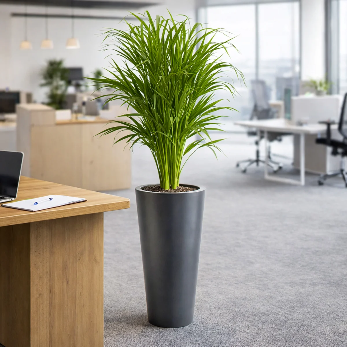 Antracytowa smukła stożkowa donica Venus 70 cmDonica PD CONCEPT VENUS w kolorze antracytWymiar donicy Venus wys. 70 cm z wewnętrzną półkąAntracytowa donica Venus z arekąZestawienie donic Venus wys. 70-91 cm