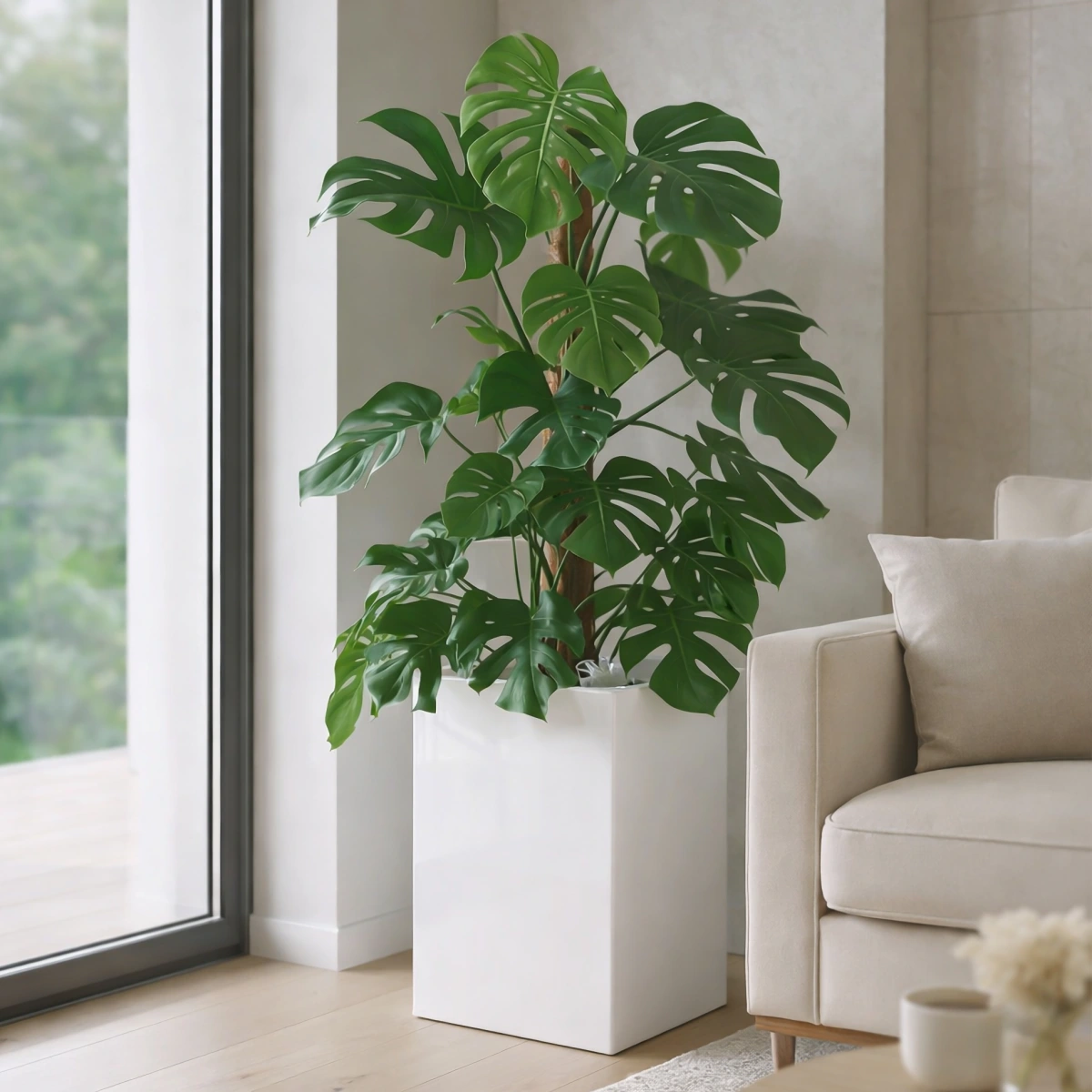 Biała kwadratowa donica D100C (40x40x60 cm) z serii ZADORA Classic to elegancka i praktyczna ozdoba tarasu. Wykonana z lekkiego, ale wytrzymałego kompozytu włókna szklanego i żywicy, jest mrozoodporna i odporna na warunki atmosferyczne. Błyszczące, białe wykończenie nadaje jej ponadczasowej elegancji, a gładka powierzchnia ułatwia czyszczenie. Donica ma pojemność blisko 100 litrów, idealną dla traw, bambusów, krzewów i miniaturowych drzewek. Dostępna jest także z opcjonalnym wkładem SWIP (17 l) z systemem nawadniania, ułatwiającym uprawę roślin w domu i biurze.