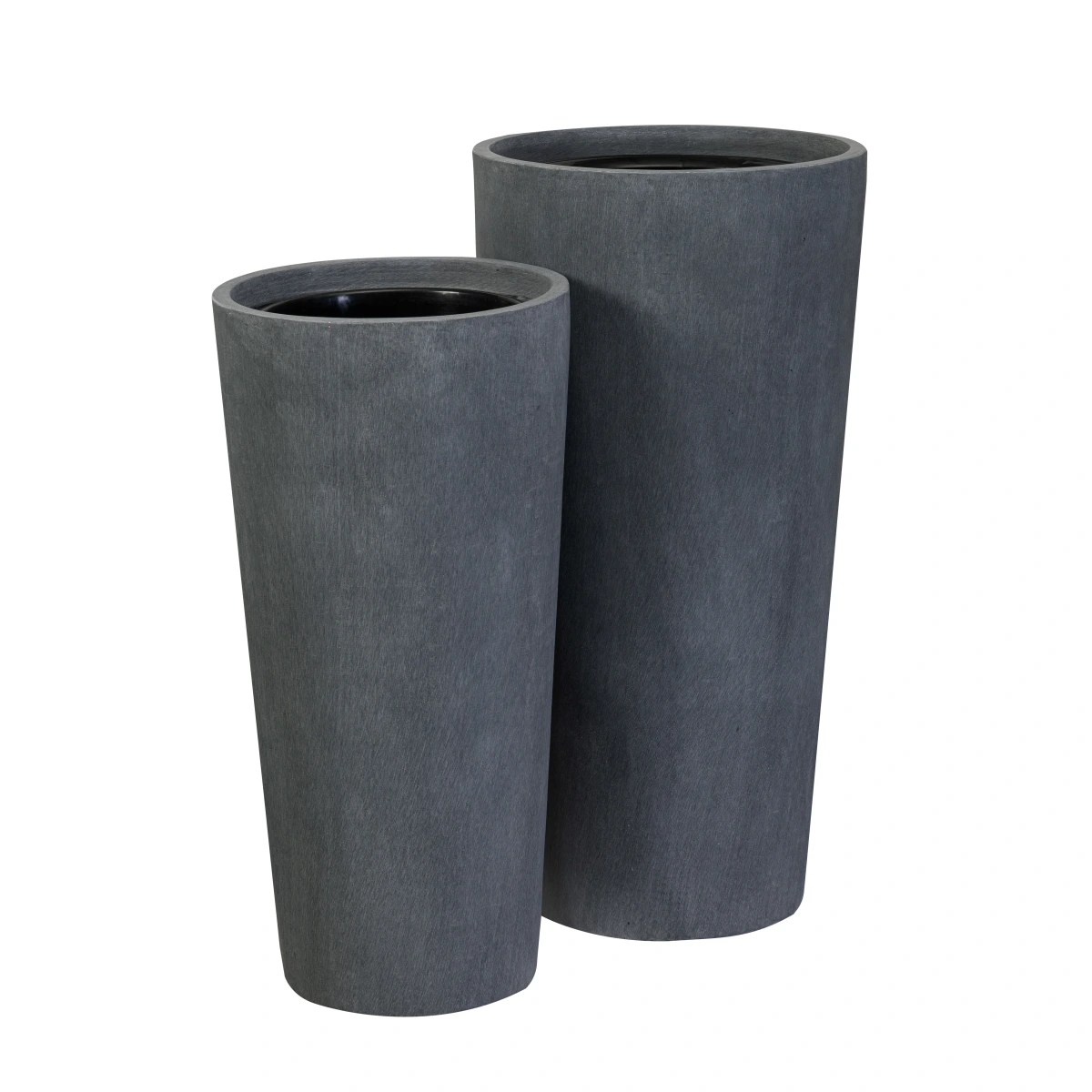Donica ZADORA Classic D208C/BPG w kolorze grafitowy beton to elegancka propozycja o subtelnie surowym charakterze. Ciemniejszy odcień betonu z matowym wykończeniem podkreśla nowoczesny styl donicy, doskonale współgrając z zielenią roślin i architekturą tarasów czy nowoczesnych wnętrz. Model o wysokości 66 cm i średnicy 33 cm wyróżnia się smukłym, stożkowym kształtem, który nadaje aranżacjom lekkości i elegancji. Wersja bez wkładu ma pełną pojemność 45 litrów i świetnie sprawdza się jako pojemnik do uprawy roślin o rozbudowanym systemie korzeniowym – na przykład palm Areca, Kencji czy juk. Przy użytkowaniu donicy wewnątrz pomieszczeń zalecane jest wykonanie solidnej warstwy drenażowej z keramzytu, a przy użytkowaniu na zewnątrz – otworów w dnie, które zapewnią odpływ wody deszczowej.