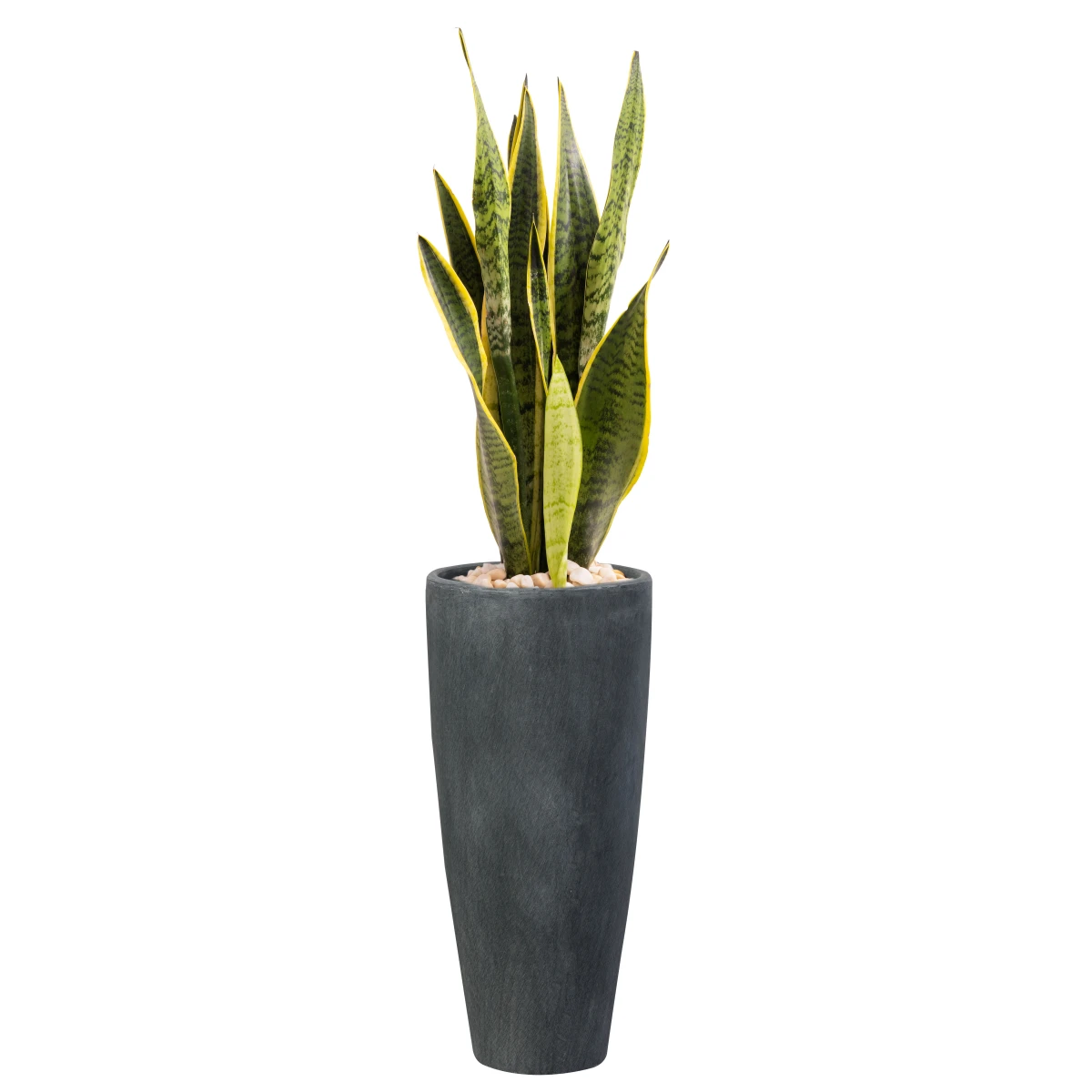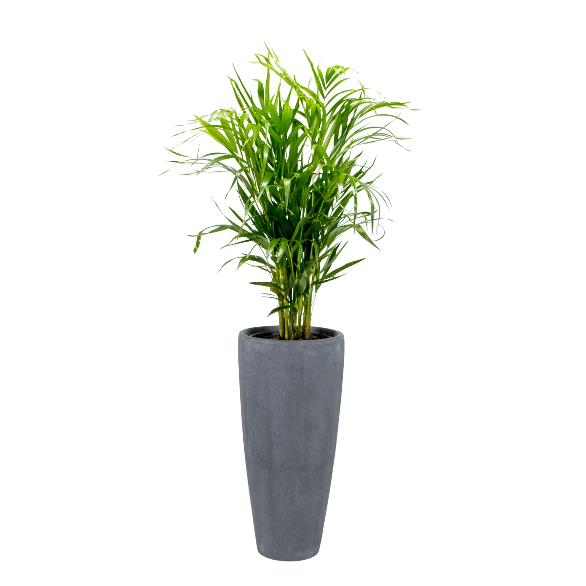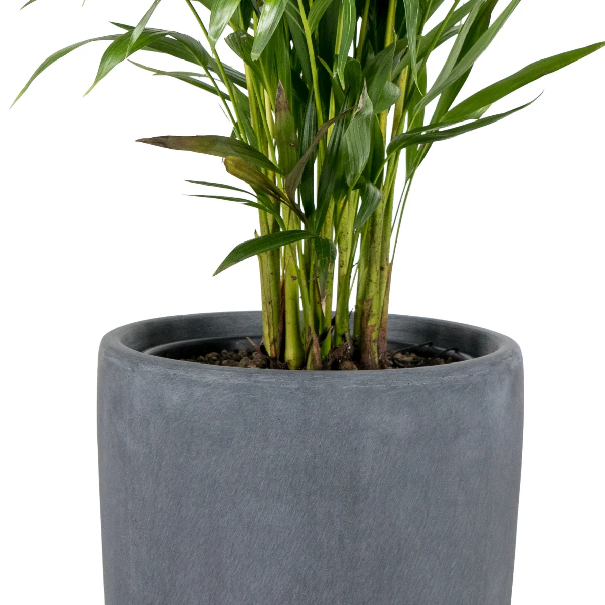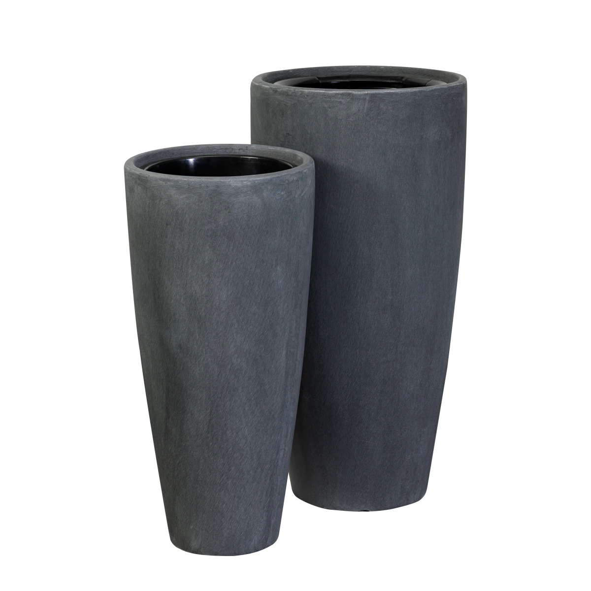 Model D282C to smukła, stożkowa donica o wysokości 66 cm i średnicy 32 cm. Jej proporcjonalna sylwetka sprawia, że świetnie sprawdza się zarówno jako samodzielny akcent, jak i w zestawieniu kilku sztuk ustawionych obok siebie. Kolor grafitowy beton to ciemniejsza, szlachetna wersja szarego betonu – matowa powierzchnia z naturalnym rysunkiem, przypominającym beton architektoniczny, doskonale współgra z zielenią roślin i nowoczesną architekturą.