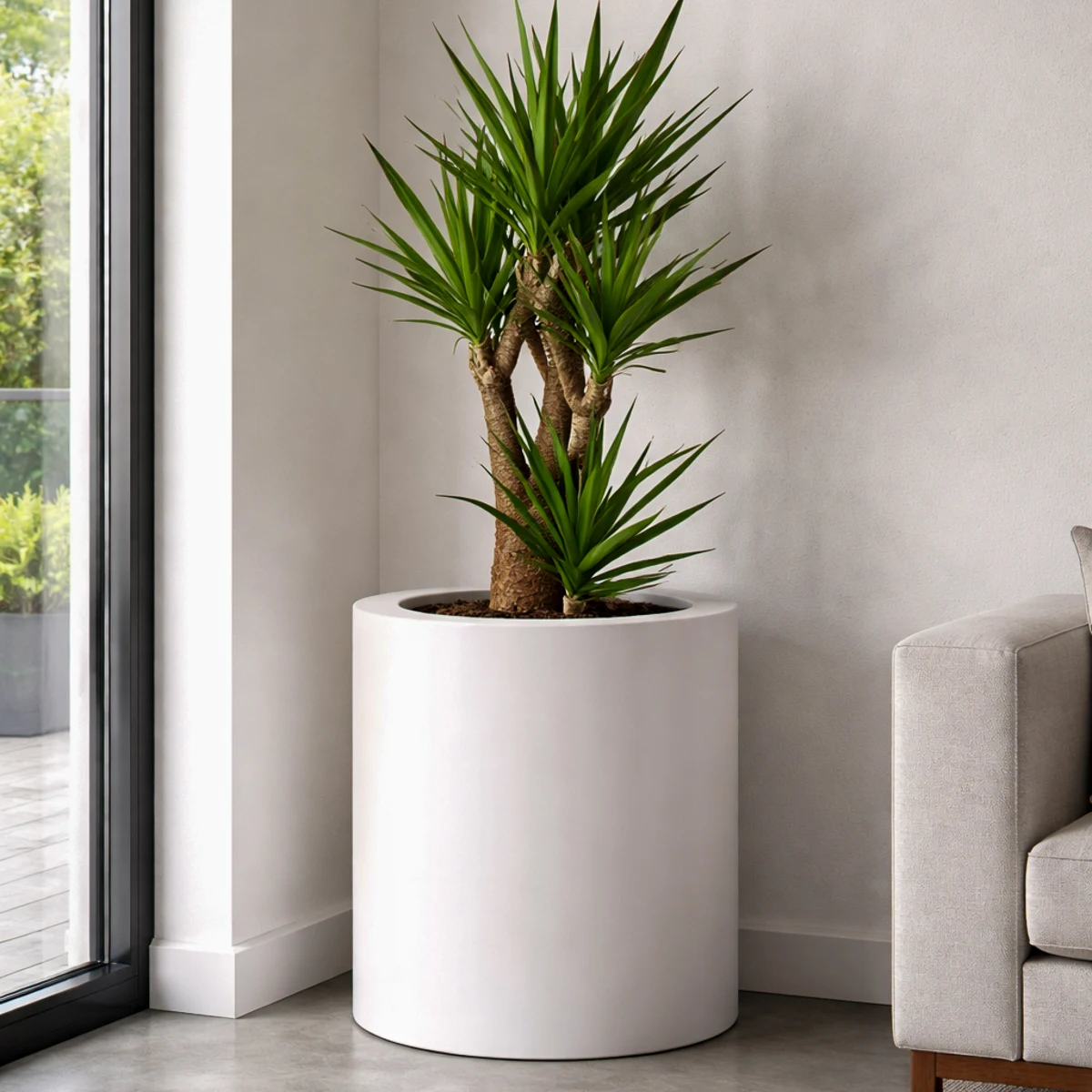 Ta nowoczesna okrągła donica w kolorze białym to kwintesencja ponadczasowej elegancji. Cylindryczny kształt mimo dużych rozmiarów donicy sprawia, że wygląda lekko. Jej zaletą jest duża pojemność, dzięki czemu sprawdzi się w przypadku dużych roślin pokojowych, drzew cytrusowych i palm. Będzie też doskonałym wyborem jako miejsce nasadzenia dla dużych krzewów i drzewek mających znaleźć się na tarasie, czy też w ogrodzie. Na pewno doda też prestiżu i elegancji, gdy z odpowiednią rośliną zostanie postawiona przed siedzibą firmy lub wejściem do hotelu.