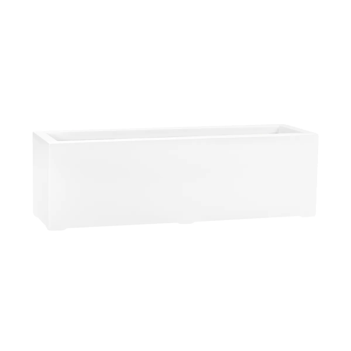 Model D972LB w kolorze biały mat to praktyczna donica o kompaktowej wysokości i wydłużonej formie, która doskonale sprawdza się w przestrzeniach o ograniczonej powierzchni. Wymiary 90 cm długości, 28 cm szerokości i 28 cm wysokości pozwalają na wygodne ustawienie jej przy balustradzie, ścianie lub wzdłuż ciągów komunikacyjnych. To idealne rozwiązanie na balkon, taras oraz do przestrzeni komercyjnych, gdzie liczy się estetyczne uporządkowanie zieleni.