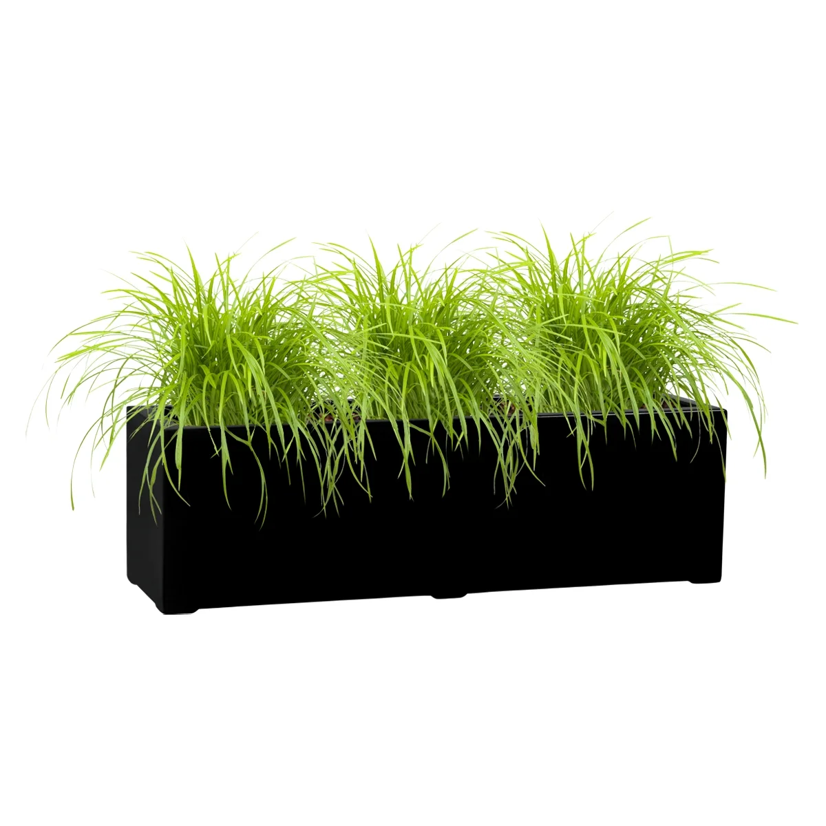 Błyszcząca, głęboka czerń nadaje donicy wyjątkowej elegancji i sprawia, że staje się ona wyrazistym elementem dekoracyjnym. Powierzchnia w połysku odbija światło, dzięki czemu donica przyciąga wzrok i nadaje przestrzeni bardziej luksusowy charakter. Doskonale komponuje się z nowoczesnymi materiałami, takimi jak szkło, metal czy beton, tworząc spójne i stylowe aranżacje. Dzięki swojej długości donica D972LB umożliwia tworzenie efektownych, liniowych nasadzeń, które porządkują przestrzeń i nadają jej nowoczesnego charakteru. Sprawdzi się przy sadzeniu traw ozdobnych, roślin balkonowych oraz dekoracyjnych kompozycji sezonowych. Może pełnić funkcję naturalnej przegrody, oddzielając strefy wypoczynkowe na tarasie lub w przestrzeni komercyjnej.