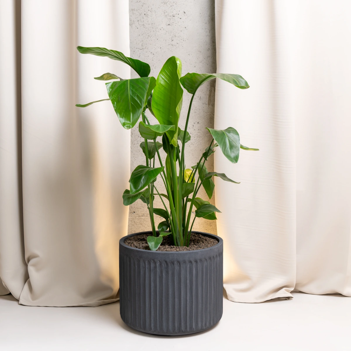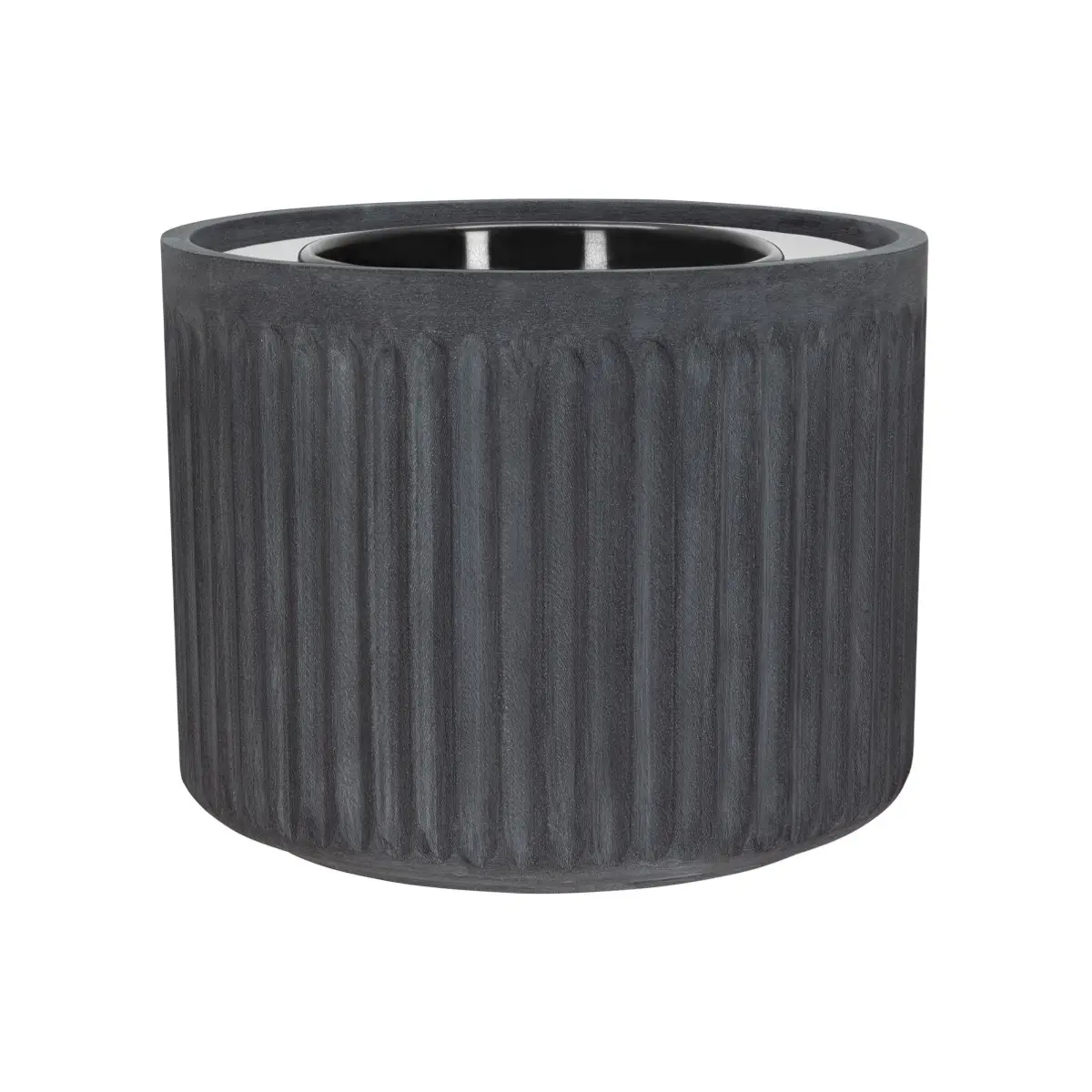 Donica LEO37 reprezentuje największy model w kolekcji doniczek LEO, charakteryzujących się unikatowym wzorem w formie ryflowanej faktury, nawiązującej do ozdobnych detali rzymskich kolumn. Jej wyjątkowa struktura i głęboki odcień grafitowego betonu doskonale harmonizują z nowoczesnym, minimalistycznym nurtem w projektowaniu przestrzeni. Ciemnoszary kolor oraz surowe wykończenie idealnie oddają wygląd architektonicznego betonu.
