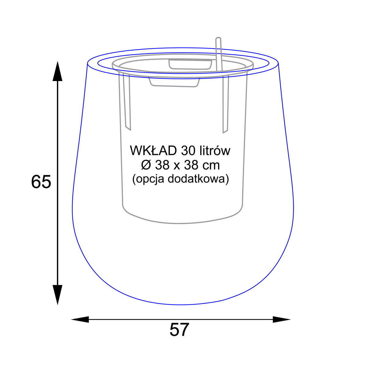 Donica SQ65 w opcji z wyjmowanym wkładem to wersja dedykowana do stosowania w pomieszczeniach domowych i biurowych. Wewnętrzna donica o średnicy 38 cm i głębokości 38 cm ma 30 litrów objętości i jest odpowiednia nawet dla dużych roślin domowych. Wewnętrzny wkład zawieszony jest za okrągłej ramce, którą łatwo zamaskujesz keramzytem lub innym ozdobnym kruszywem. Dodatkowym atutem wewnętrznej donicy SWIP 38x38 cm jest zintegorwany system nawadniania z zasobnikiem wody o pojemności około 4,5 litra. Kanał rewizyjny z wskaźnikiem poziomu wody na boku wkładu informuje, kiedy należy uzupełnić zapas wody. W przypadku użytkowania donicy SQ65 z wkładem na zewnątrz, należy wywiercić otwór odpływowy w dnie donicy i usunąć gumowy korek z dna wkładu. Dzięki temu nadmiar wody po obfitych opadach deszczu bezpiecznie odpłynie, chroniąc rośliny przed przelaniem i gniciem korzeni.