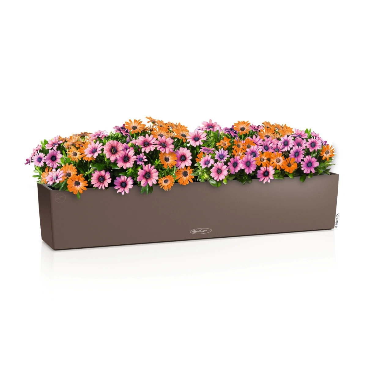 BALCONERA Color 100 w kolorze muszkatołowy brąz to donica balkonowa LECHUZA z systemem nawadniania, która wprowadza do aranżacji ciepły, naturalny charakter. Jej prostokątna bryła o drobnej strukturze pozwala na praktyczne zagospodarowanie przestrzeni balkonowej, a stonowany brąz harmonizuje z drewnem, cegłą i zielenią roślin. Donica została zaprojektowana tak, aby zapewniać roślinom stabilne warunki rozwoju przy ograniczonej potrzebie codziennej pielęgnacji.