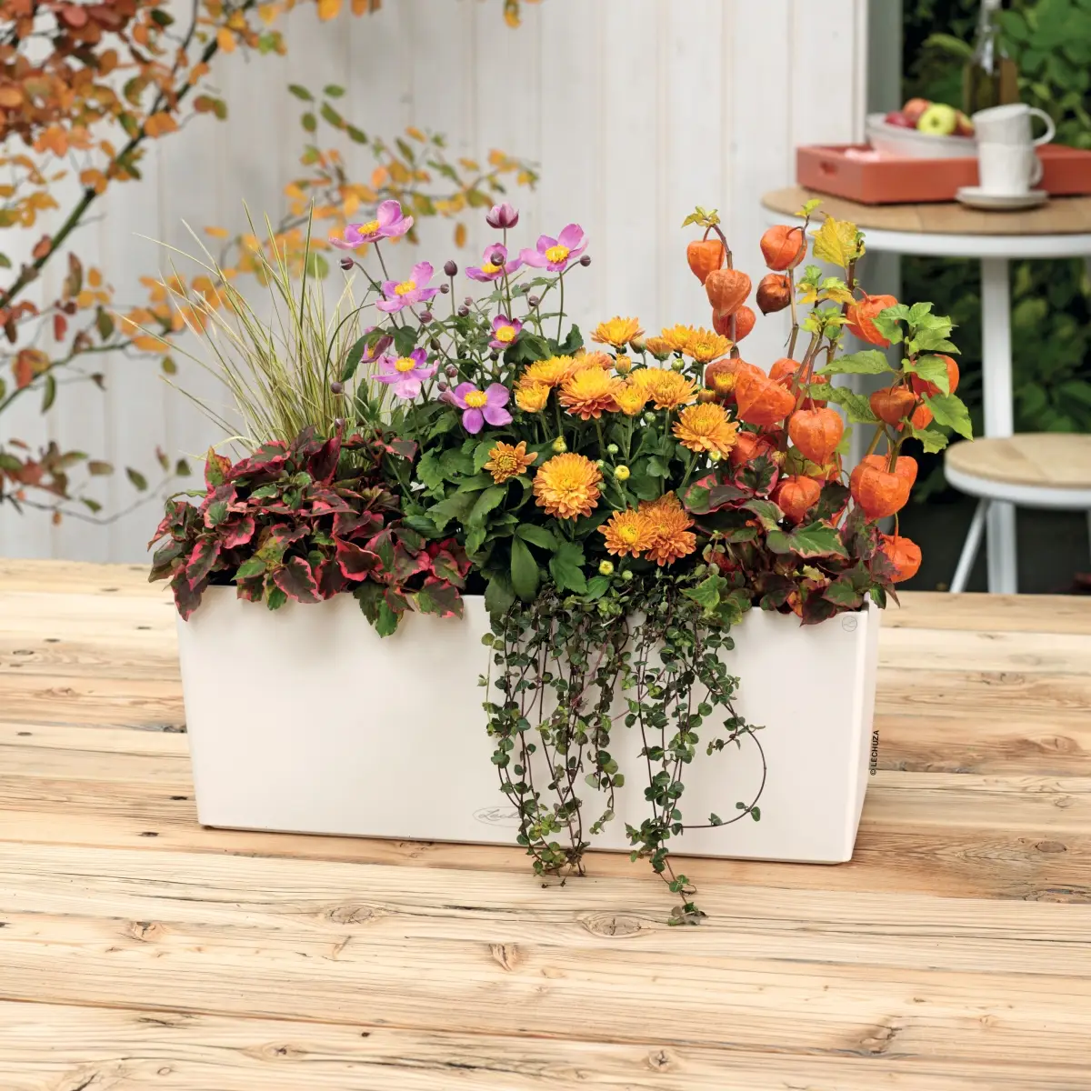BALCONERA Color 40 w kolorze białym to kompaktowa doniczka balkonowa LECHUZA z systemem nawadniania, zaprojektowana z myślą o mniejszych balkonach, wąskich parapetach i ograniczonych przestrzeniach. Jej proporcjonalna, prostokątna forma umożliwia estetyczne zagospodarowanie nawet niewielkiej powierzchni, bez rezygnacji z komfortu pielęgnacji roślin. Matowe wykończenie w kolorze białym nadaje aranżacji lekkości i świeżości, jednocześnie podkreślając naturalną zieleń roślin i kwiatów.