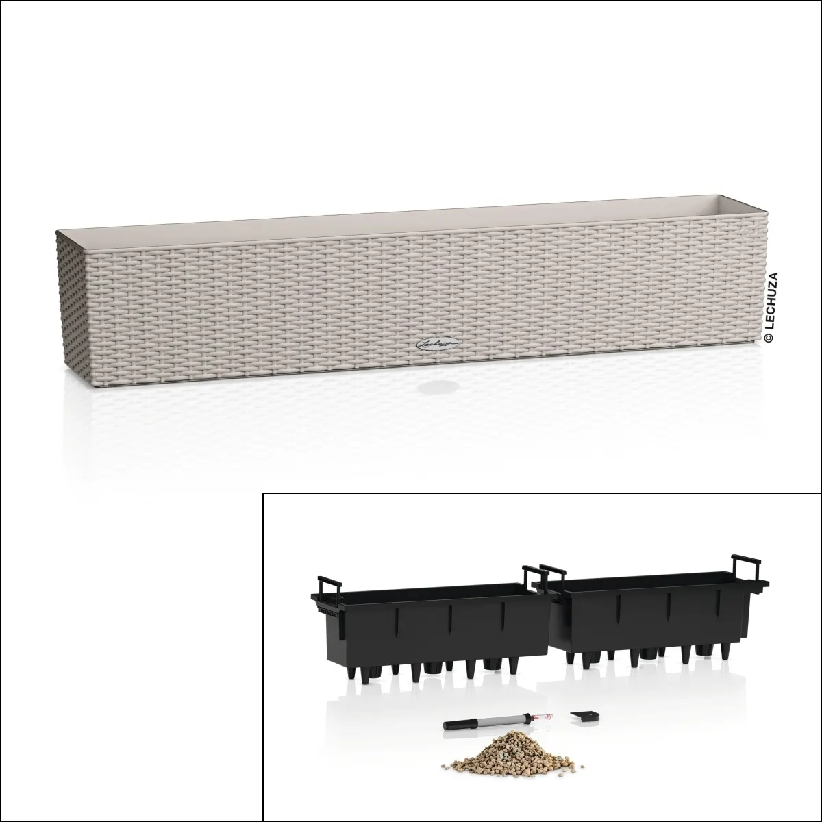 LECHUZA BALCONERA Cottage 100 w kolorze piaskowy brąz to doniczka na balkon i taras z systemem nawadniania, zaprojektowana z myślą o aranżacjach, które mają wyglądać naturalnie i minimalistycznie. Wydłużona forma doniczki oraz dekoracyjna struktura technoratanu serii Trend Cottage nadają jej miękki, przyjazny charakter i pozwalają wprowadzić zieleń w sposób spokojny oraz harmonijny. Piaskowy brąz dobrze wpisuje się w otoczenie, nie kontrastując z nim nadmiernie, dzięki czemu donica nie dominuje przestrzeni, lecz staje się jej integralnym elementem. To rozwiązanie dla osób, które chcą, aby balkon lub taras wyglądał naturalnie przez cały sezon, bez potrzeby częstych zmian aranżacyjnych.