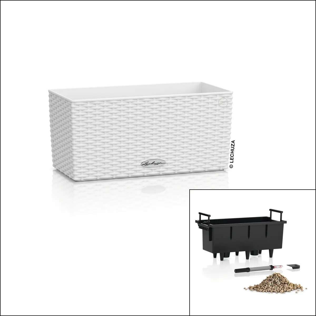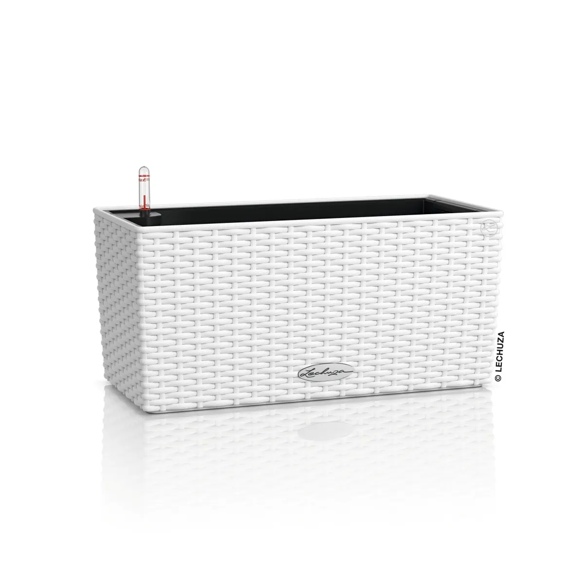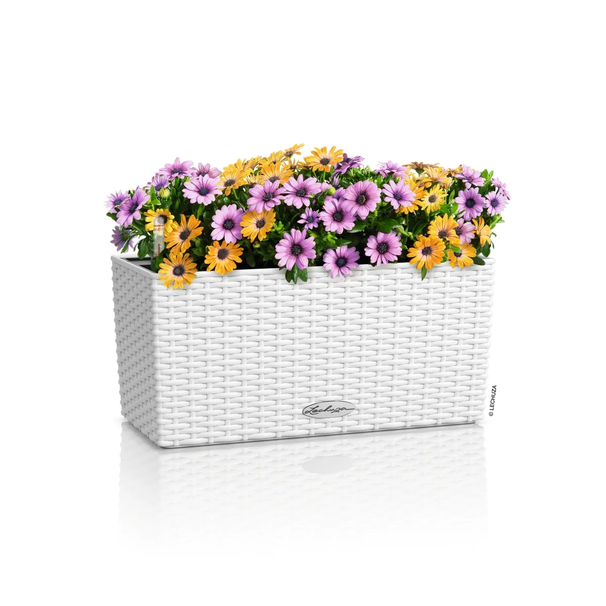 LECHUZA BALCONERA Cottage 40 w kolorze białym to elegancka donica na balkon z systemem nawadniania. Ta kompaktowa doniczka LECHUZA do kwiatów i ziół to stylowa propozycja do jasnych aranżacji balkonowych i tarasowych. Jej proporcjonalna, prostokątna forma pozwala na tworzenie uporządkowanych kompozycji roślinnych nawet na niewielkiej przestrzeni, a dekoracyjna struktura charakterystyczna dla serii Trend Cottage subtelnie nawiązuje do splotów technoratanu. Jasna kolorystyka rozjaśnia przestrzeń i stanowi neutralne tło dla zieleni oraz roślin kwitnących.