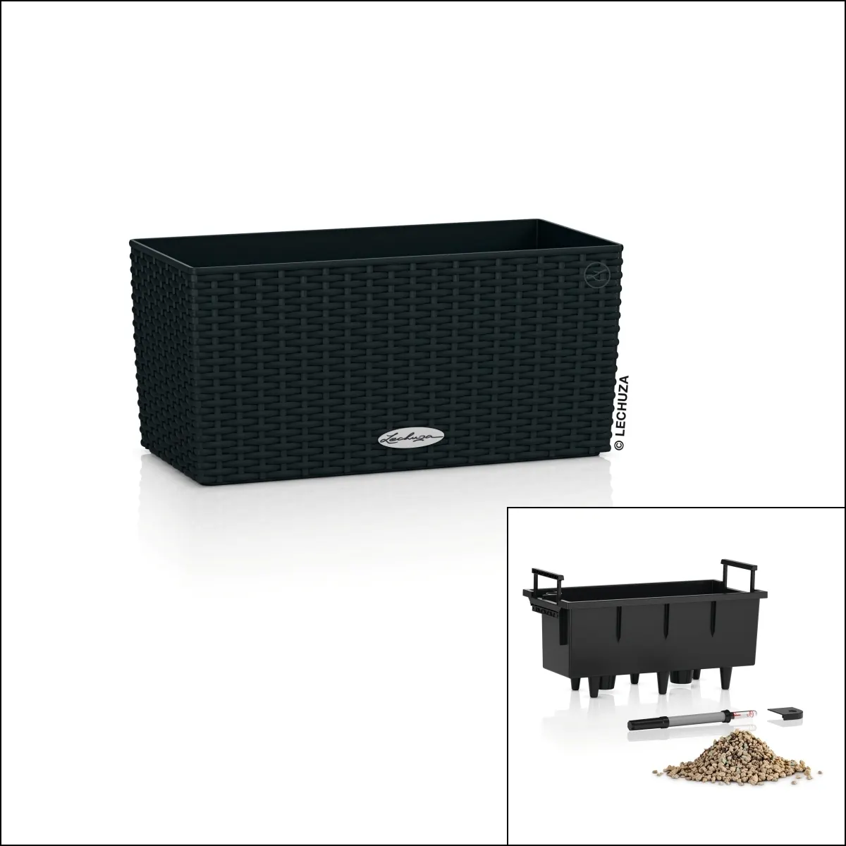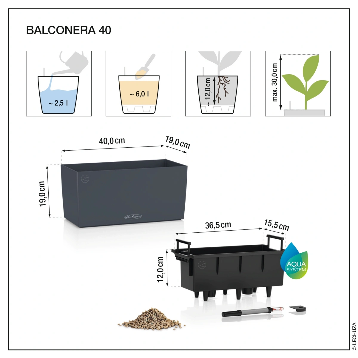 Szczegółowe wymiary i pojemności zgodnie z kartą producenta LECHUZA dostępną na stronie produktu.
