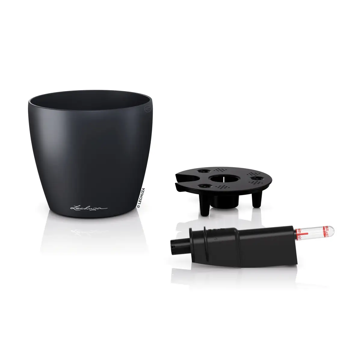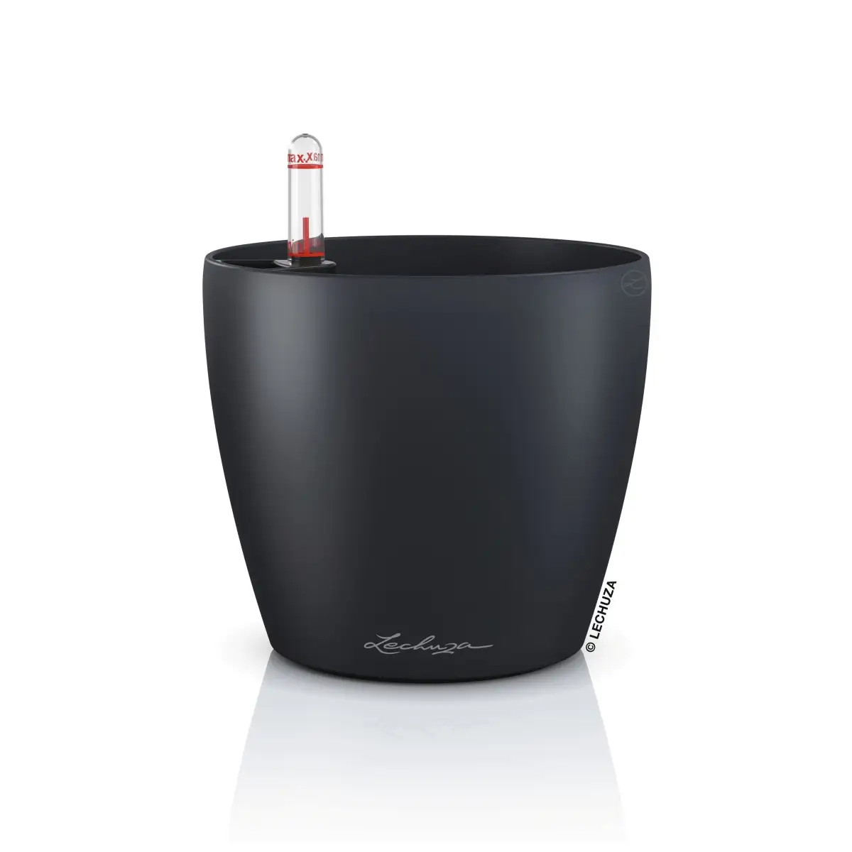 LECHUZA CLASSICO Color 14 w kolorze szary łupek to kompaktowa donica z systemem nawadniania, zaprojektowana jako wyrazisty, a jednocześnie spokojny element aranżacji wnętrz. Okrągły kształt doniczki nadaje całości miękkości, natomiast kolor inspirowany naturalnym kamieniem wprowadza do przestrzeni nowoczesny, uporządkowany charakter. To propozycja dla osób, które chcą w subtelny sposób podkreślić styl wnętrza i jednocześnie zadbać o komfort pielęgnacji roślin.