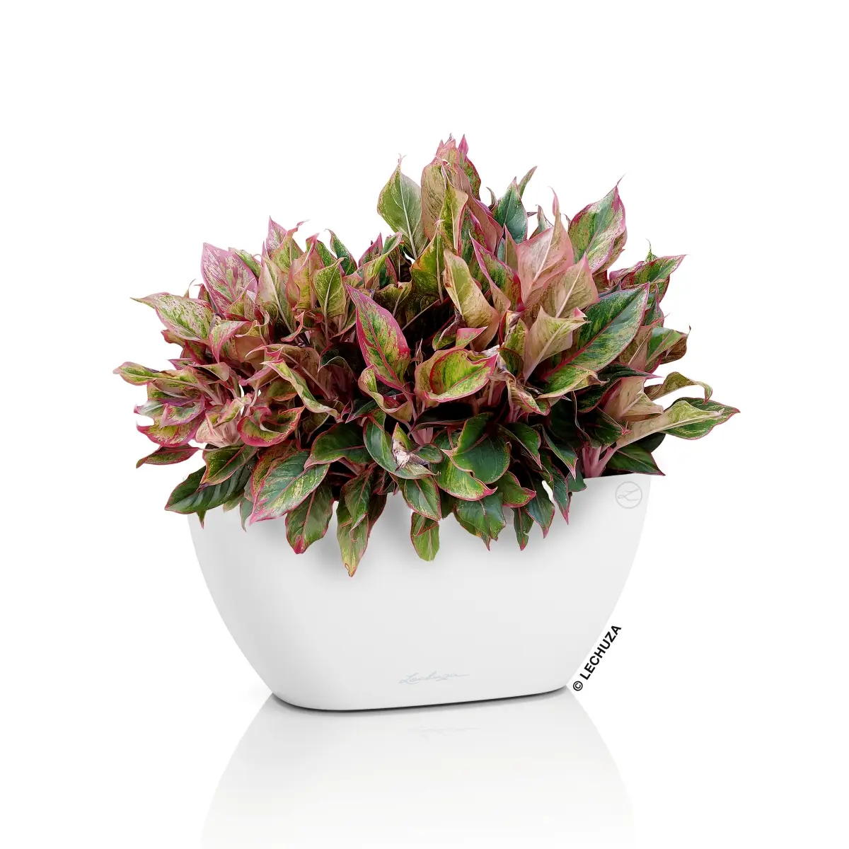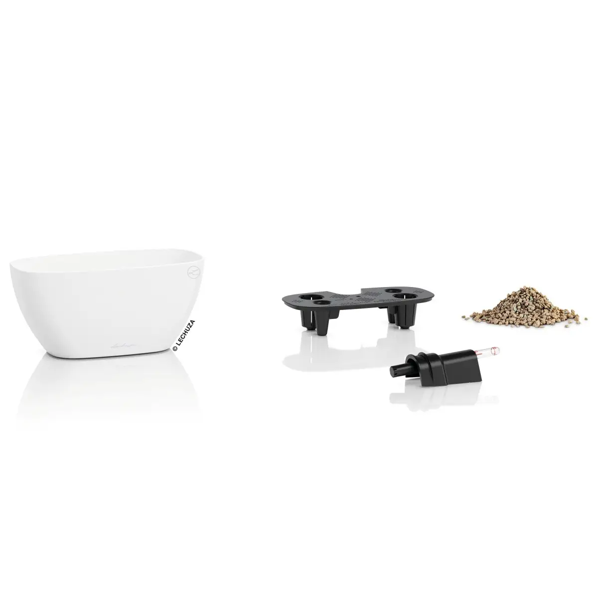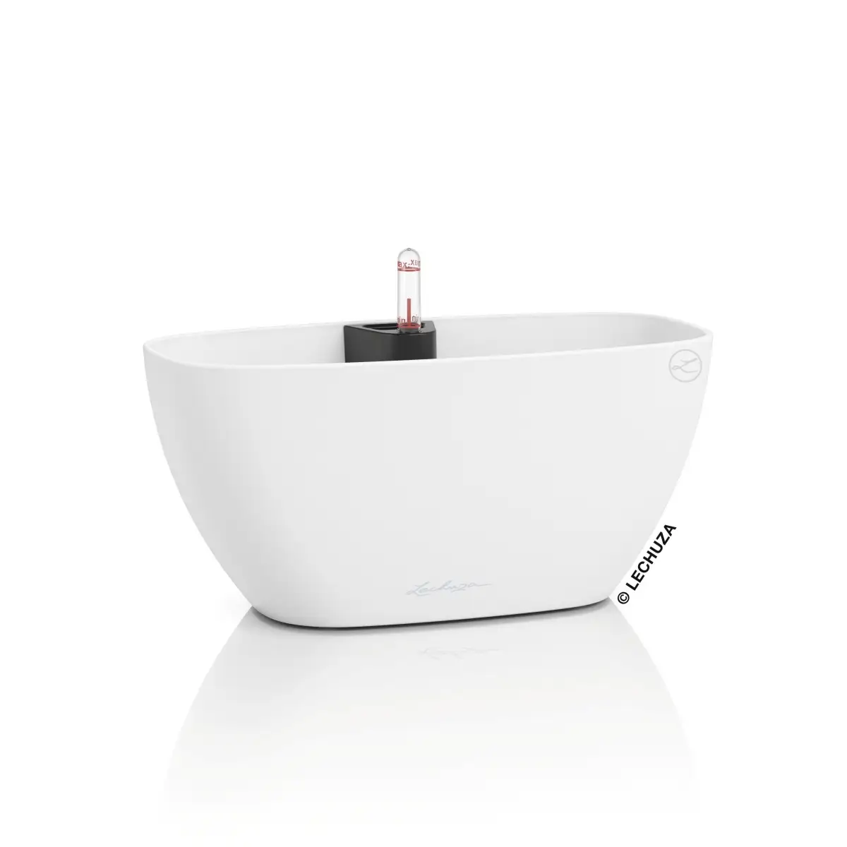 LECHUZA NAVIO Color 10 w kolorze białym to kompaktowa doniczka o wydłużonej owalnej formie, zaprojektowana z myślą o niewielkich przestrzeniach i dekoracyjnych kompozycjach roślinnych. Jej harmonijne proporcje sprawiają, że doskonale prezentuje się na parapetach, stołach oraz komodach, wprowadzając do wnętrza subtelny akcent zieleni. Matowe wykończenie charakterystyczne dla serii Trend Color podkreśla nowoczesny charakter donicy i sprawia, że model idealnie wpisuje się w minimalistyczne oraz współczesne aranżacje.