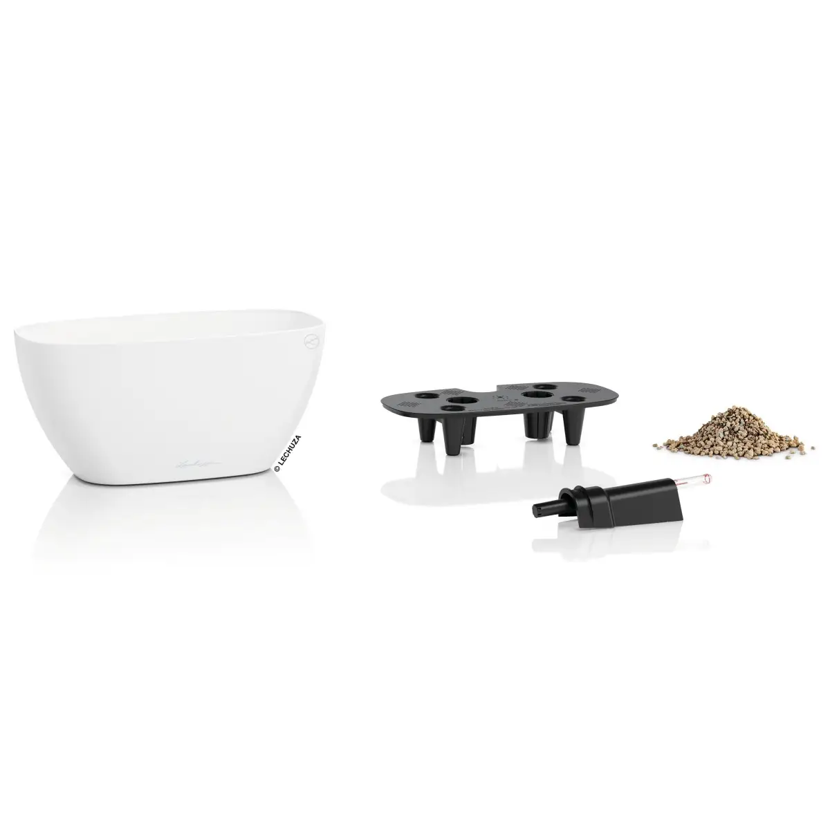 NAVIO Color 20 wyposażona jest w system nawadniania LECHUZA. W dolnej części donicy znajduje się zasobnik wody o pojemności 2 litrów, który magazynuje wodę dla roślin. Dzięki temu wilgoć jest dostępna dla systemu korzeniowego przez cały czas, co pomaga ograniczyć częstotliwość podlewania. Wskaźnik poziomu wody pozwala kontrolować ilość wody w zasobniku i ułatwia codzienną pielęgnację roślin.