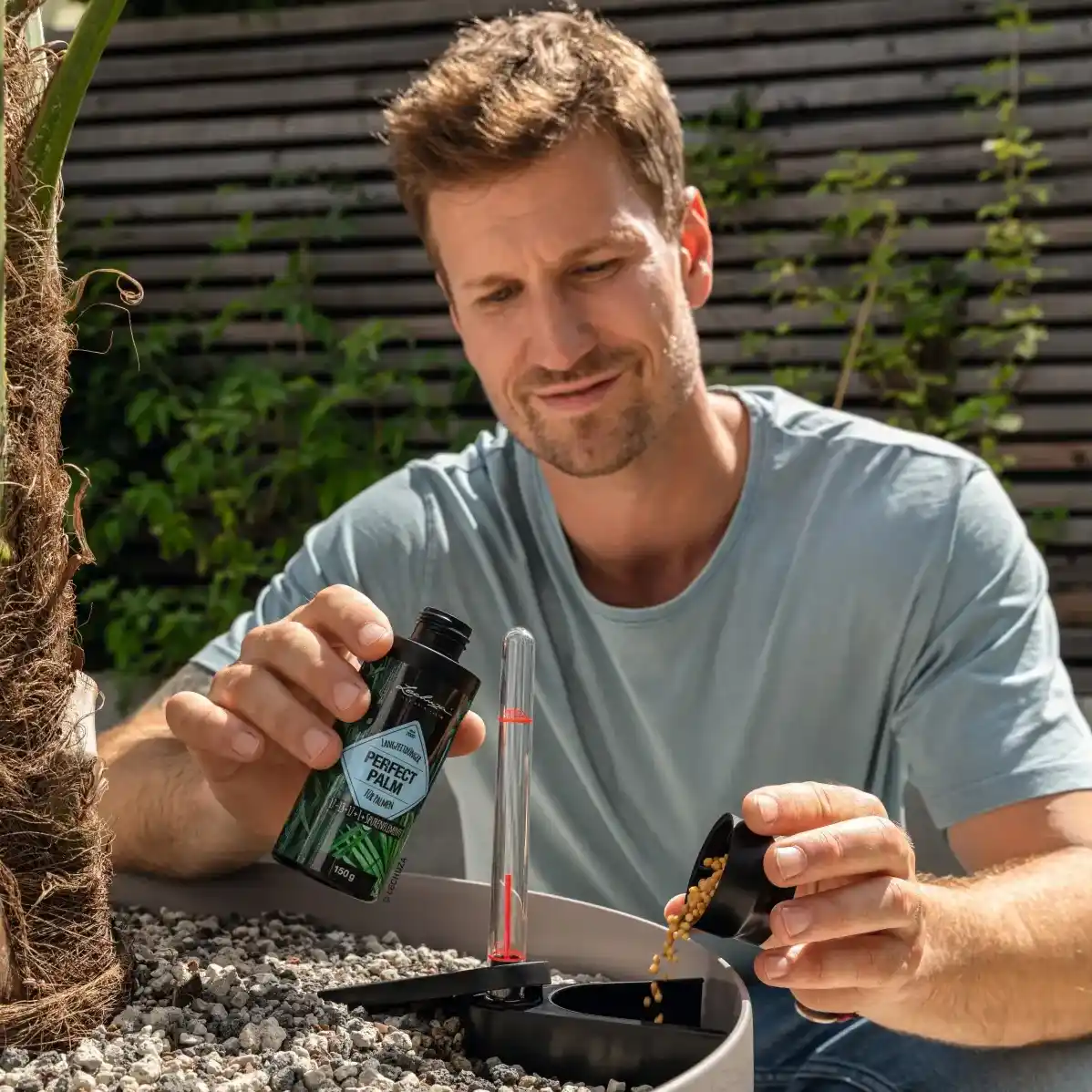 Palmy uprawiane w donicach wymagają szczególnej równowagi w dostarczaniu składników odżywczych. LECHUZA PERFECT PALM wspiera ich naturalny rytm wzrostu, pomagając utrzymać dobrą kondycję liści oraz stabilny rozwój całej rośliny. Nawóz działa w sposób łagodny i przewidywalny, co sprzyja długofalowej pielęgnacji roślin zielonych o dużych liściach.