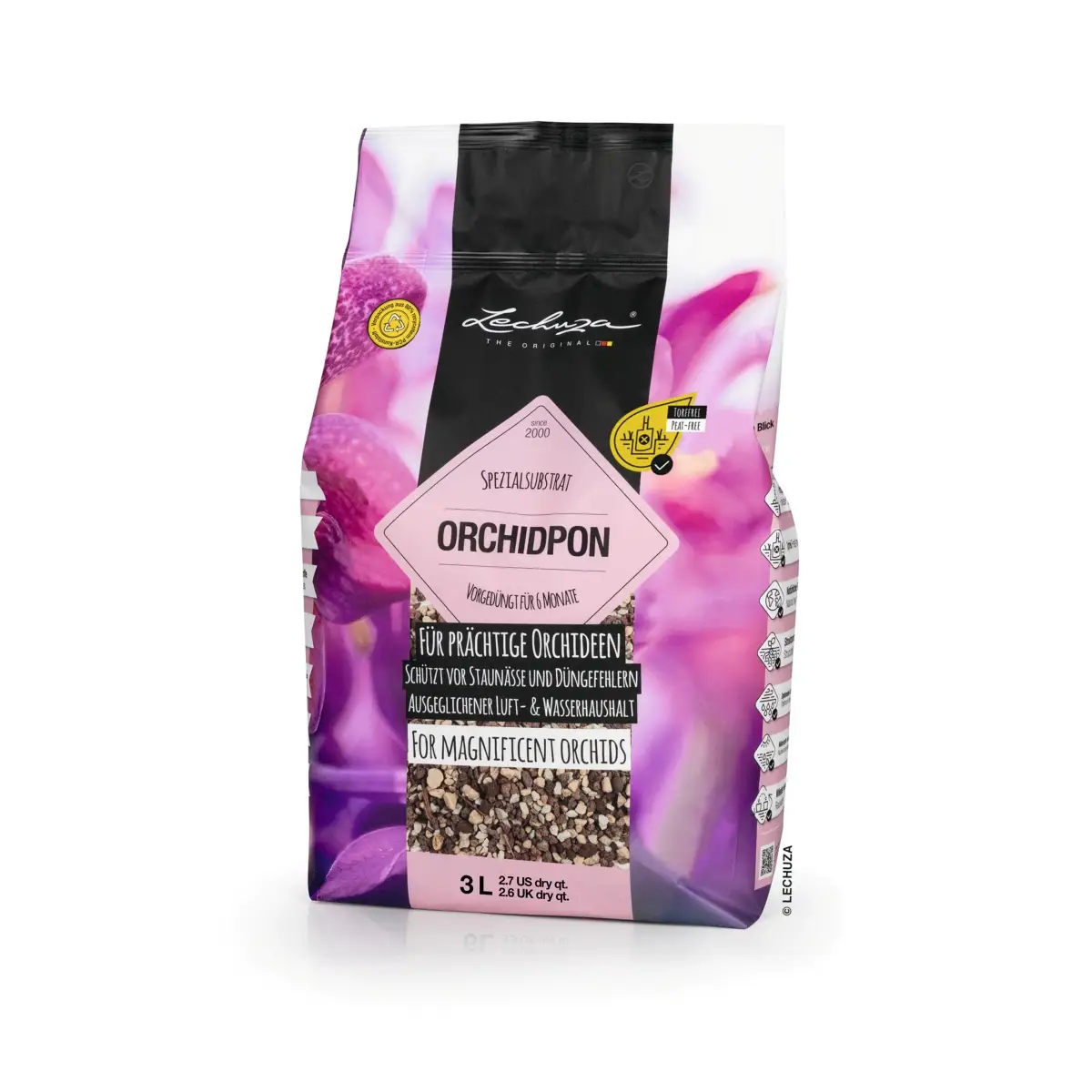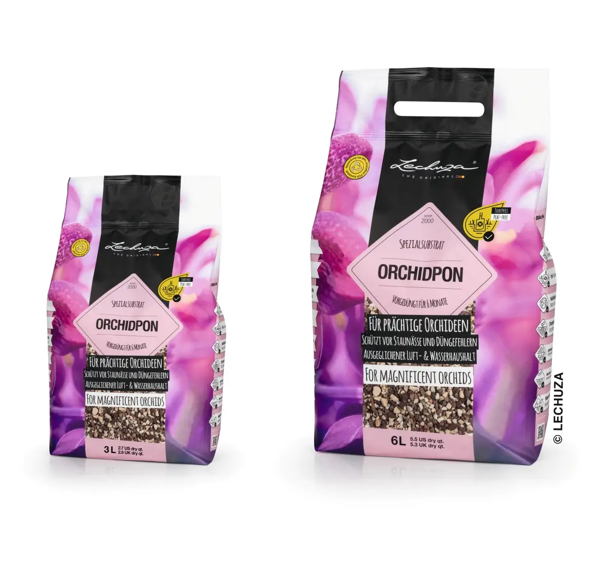 LECHUZA ORCHIDPON 3 l to profesjonalne podłoże przeznaczone do uprawy storczyków, opracowane z myślą o ich naturalnych potrzebach. Substrat bazuje na starannie dobranych składnikach mineralnych i organicznych, które zapewniają korzeniom odpowiednią ilość powietrza, stabilność oraz sprzyjające warunki do wzrostu. ORCHIDPON pozwala prowadzić uprawę storczyków w sposób bardziej przewidywalny i zbliżony do ich naturalnego środowiska.
