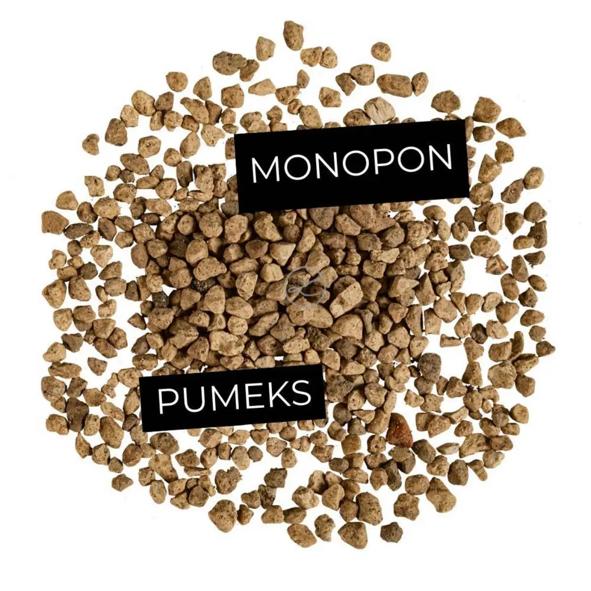 Podstawą MONOPON jest naturalny pumeks, który charakteryzuje się porowatą strukturą. Dzięki temu podłoże umożliwia swobodny przepływ powietrza w strefie korzeniowej oraz skutecznie zapobiega zastojom wody. Taka struktura ogranicza ryzyko gnicia korzeni i sprzyja utrzymaniu roślin w dobrej kondycji, nawet przy regularnym podlewaniu.
