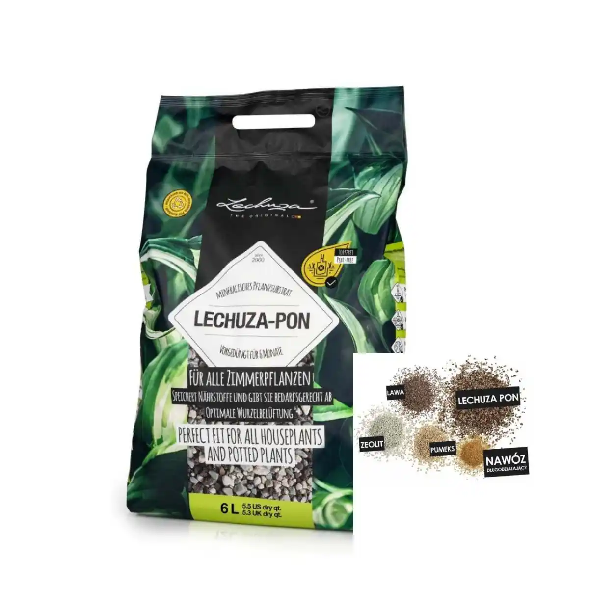 LECHUZA PON składa się z wyselekcjonowanych składników mineralnych, które zachowują swoje właściwości przez długi czas. Podłoże nie zbija się, nie osiada i nie traci przepuszczalności, dzięki czemu korzenie mają stały dostęp do powietrza i przestrzeni potrzebnej do prawidłowego wzrostu. Taka struktura sprzyja stabilnemu ukorzenieniu i ogranicza ryzyko pogorszenia kondycji roślin w czasie.