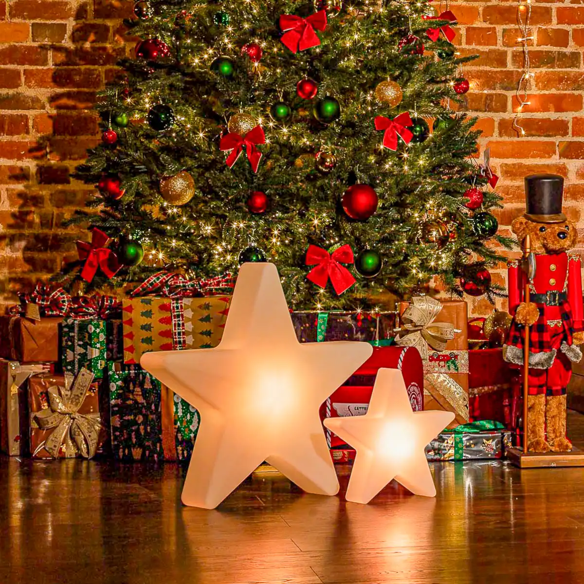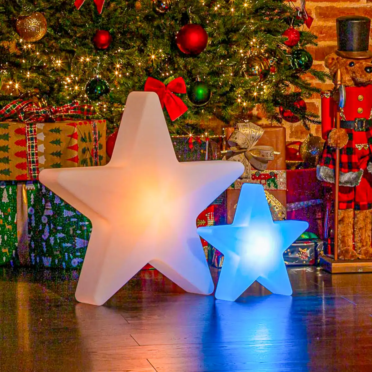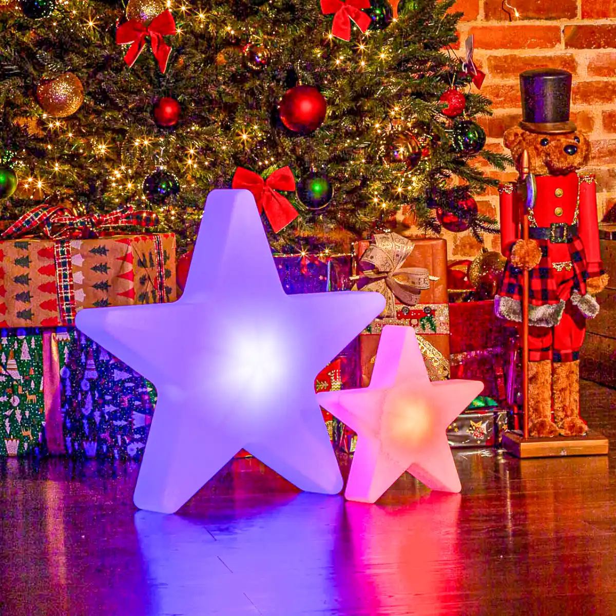 Każda z gwiazd w zestawie posiada wydajne źródło światła LED RGBW, które pozwala zmieniać kolory, jasność i tryby świecenia przy pomocy pilota. Do wyboru jest pełna paleta barw, w tym klasyczna ciepła biel, oraz dynamiczne efekty: