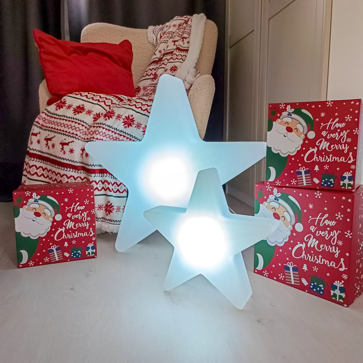 Zestaw podświetlanych gwiazdek POLARIS S i POLARIS M LED RGBW to eleganckie połączenie dwóch dekoracji w różnych rozmiarach, które wspólnie tworzą efektowną aranżację świetlną w domu lub ogrodzie. Obie gwiazdy wykonane są z wysokiej jakości polietylenu (PE) i wyposażone w akumulatorowe moduły LED RGBW z możliwością sterowania pilotem. Dzięki bezprzewodowemu działaniu możesz je dowolnie ustawić - na podłodze, komodzie, parapecie lub tarasie – bez ograniczeń, które powodują przewody.