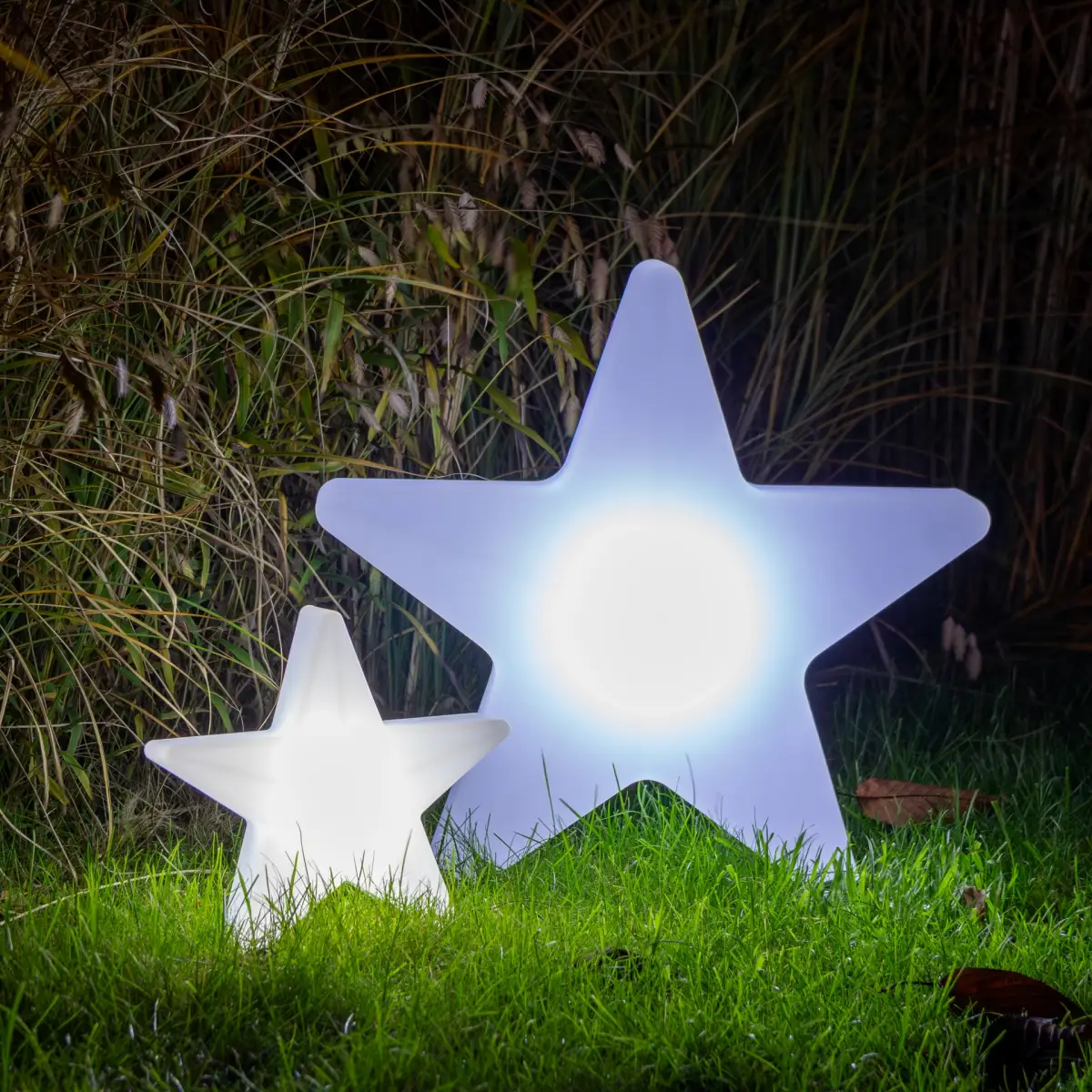 Zestaw LED gwiazdka POLARIS M + gwiazdka POLARIS S to elegancki komplet dwóch nowoczesnych, podświetlanych ozdób świątecznych o wysokościach 60 cm i 30 cm. Obie ozdoby wykonano z trwałego polietylenu (PE), wyposażono w moduły LED RGBW oraz sterowanie pilotem. Ten zestaw tworzy stylową i harmonijną dekorację świetlną, idealną do wnętrz i przestrzeni komercyjnych, a także na tarasy i balkony.